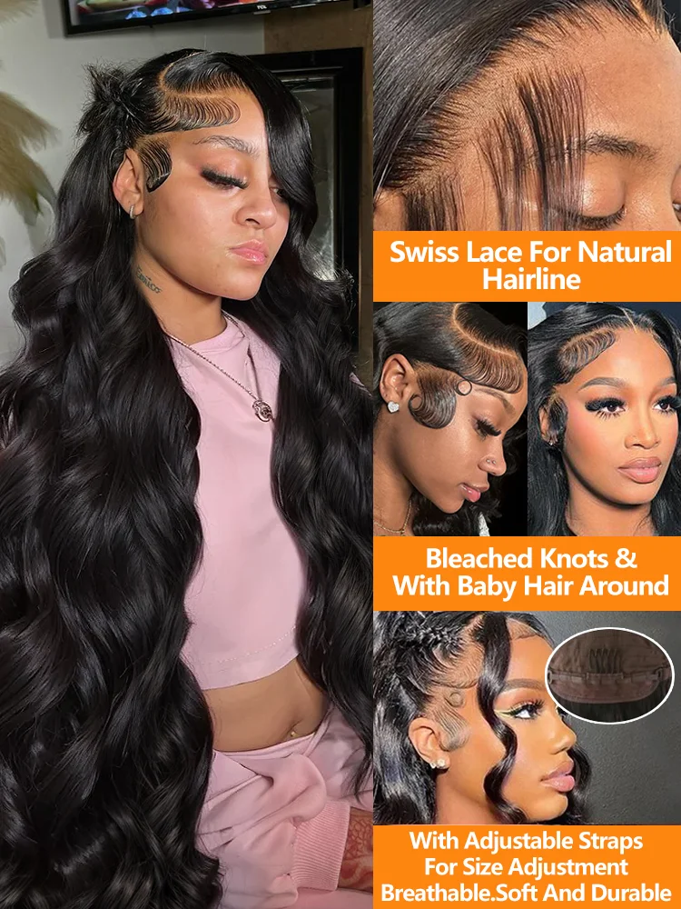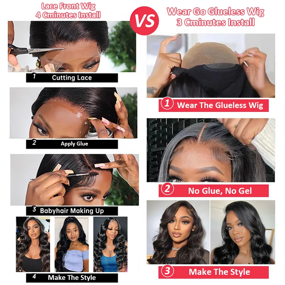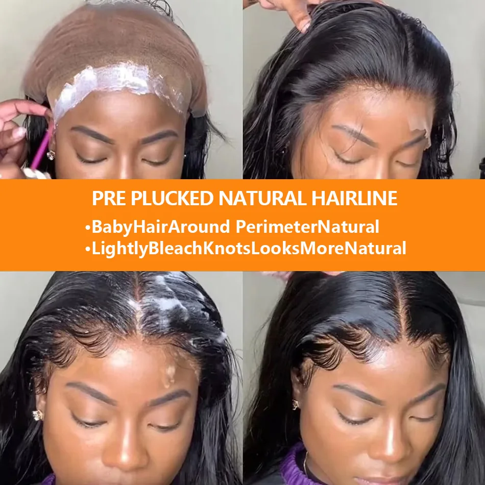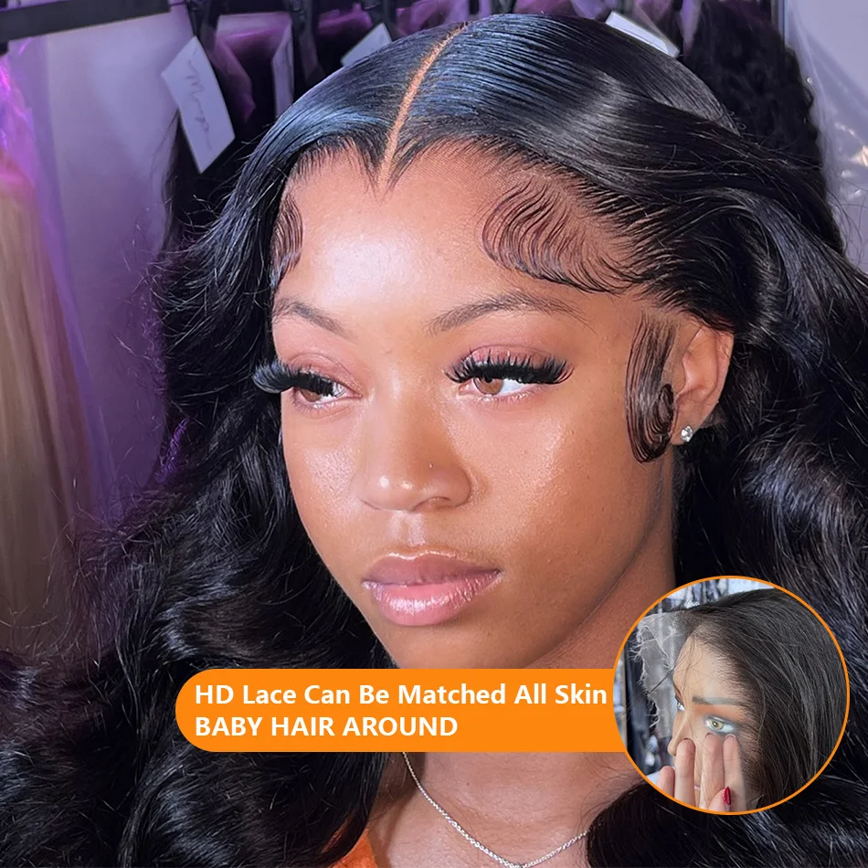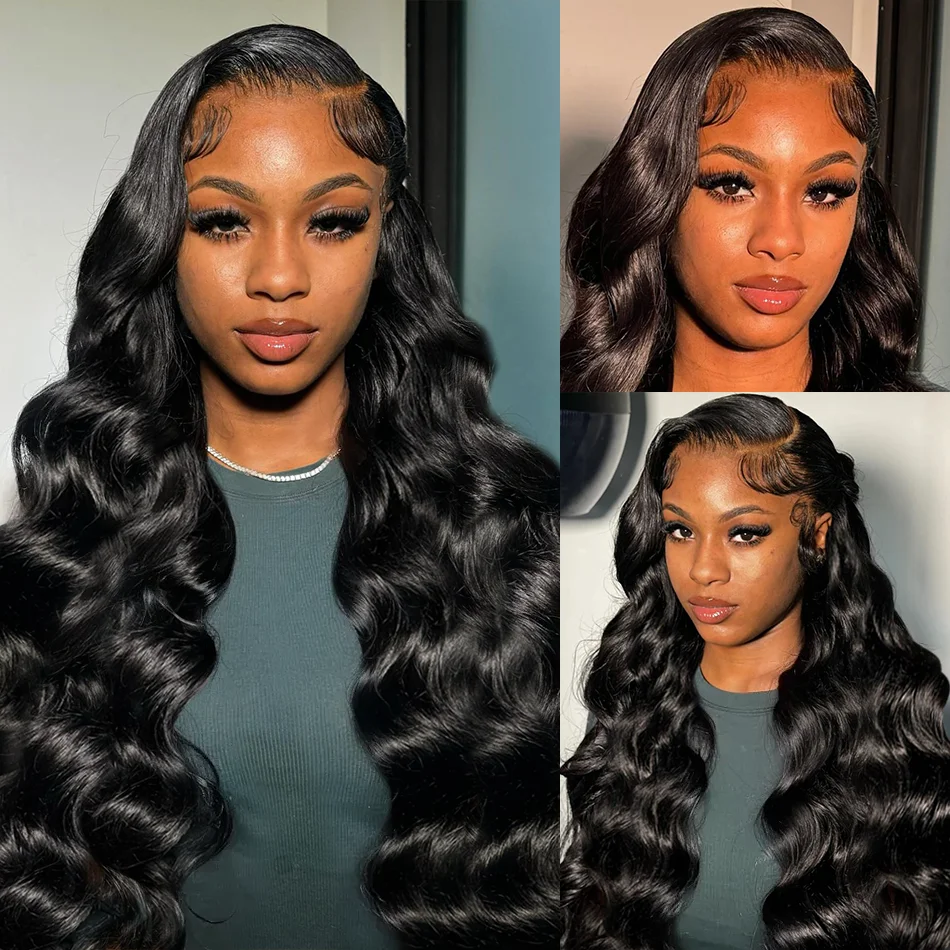 100% Human Hair 13x6 Black Body Wave Lace Frontal Wigs HD 30 40 Inch 13x4 Lace Front Wig Water Loose 5x5 Glueless Closure WearGo