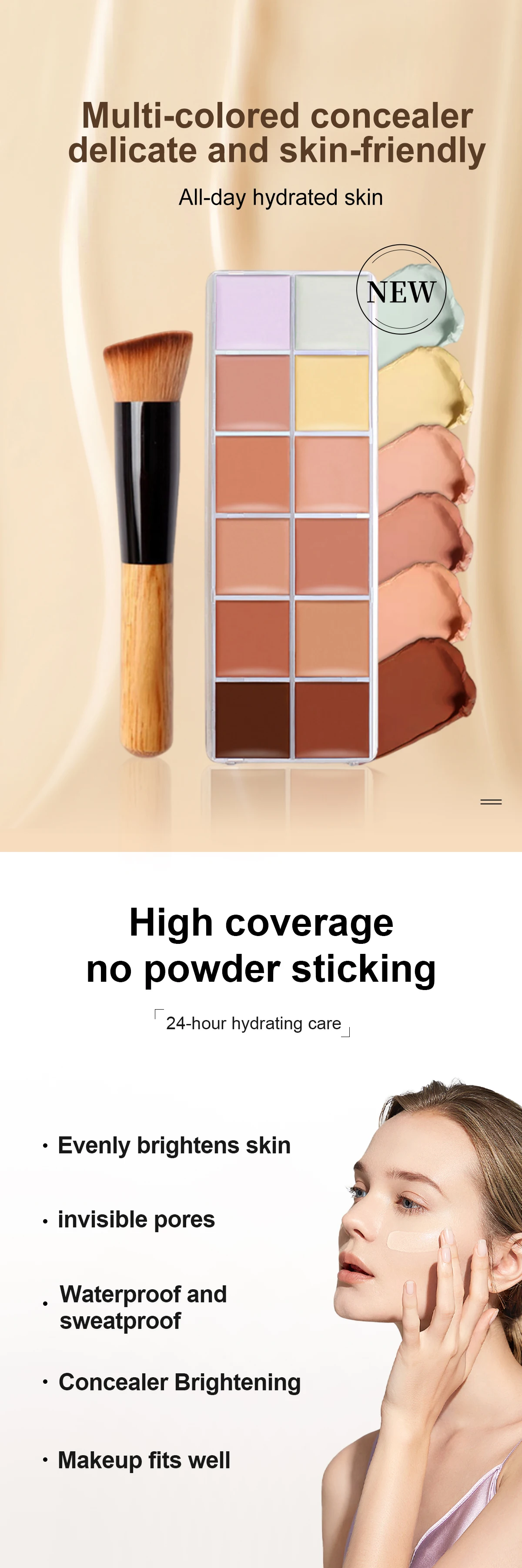 12 Color Concealer Foundation Makeup, Waterproof Skin Tone Correction Concealer, Long-term Full Coverage Makeup Facial Cosmetics