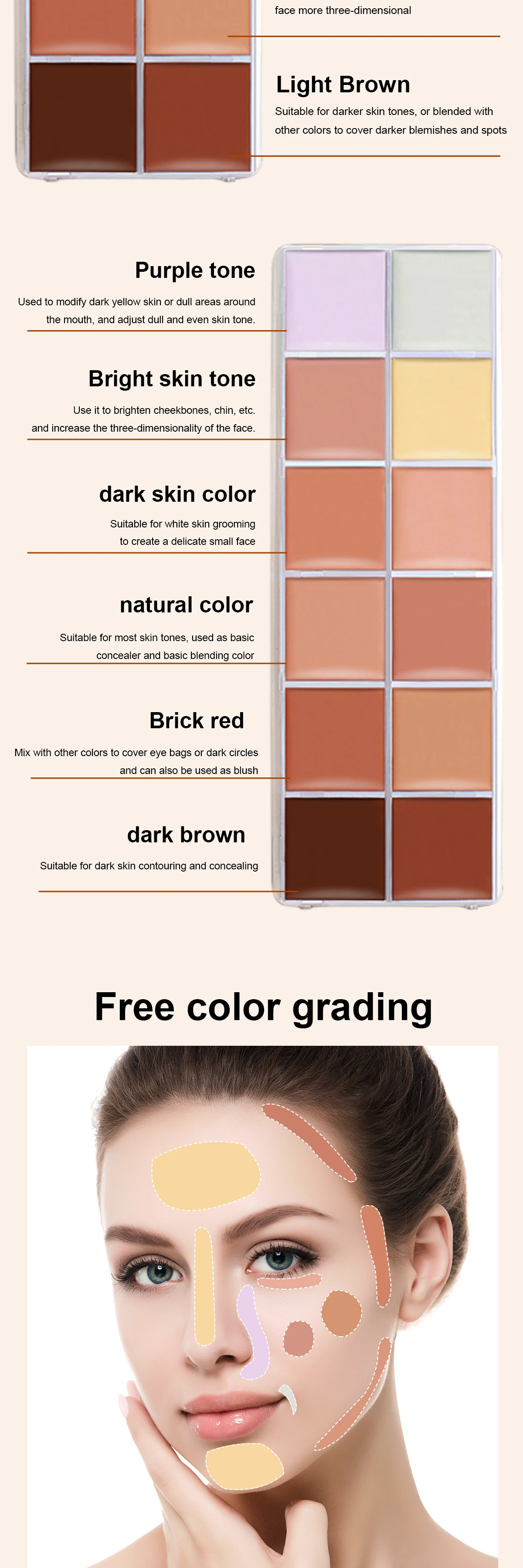 There are 12 kinds of concealer with 12 colors to choose from, more choices, and colors closer to the skin.