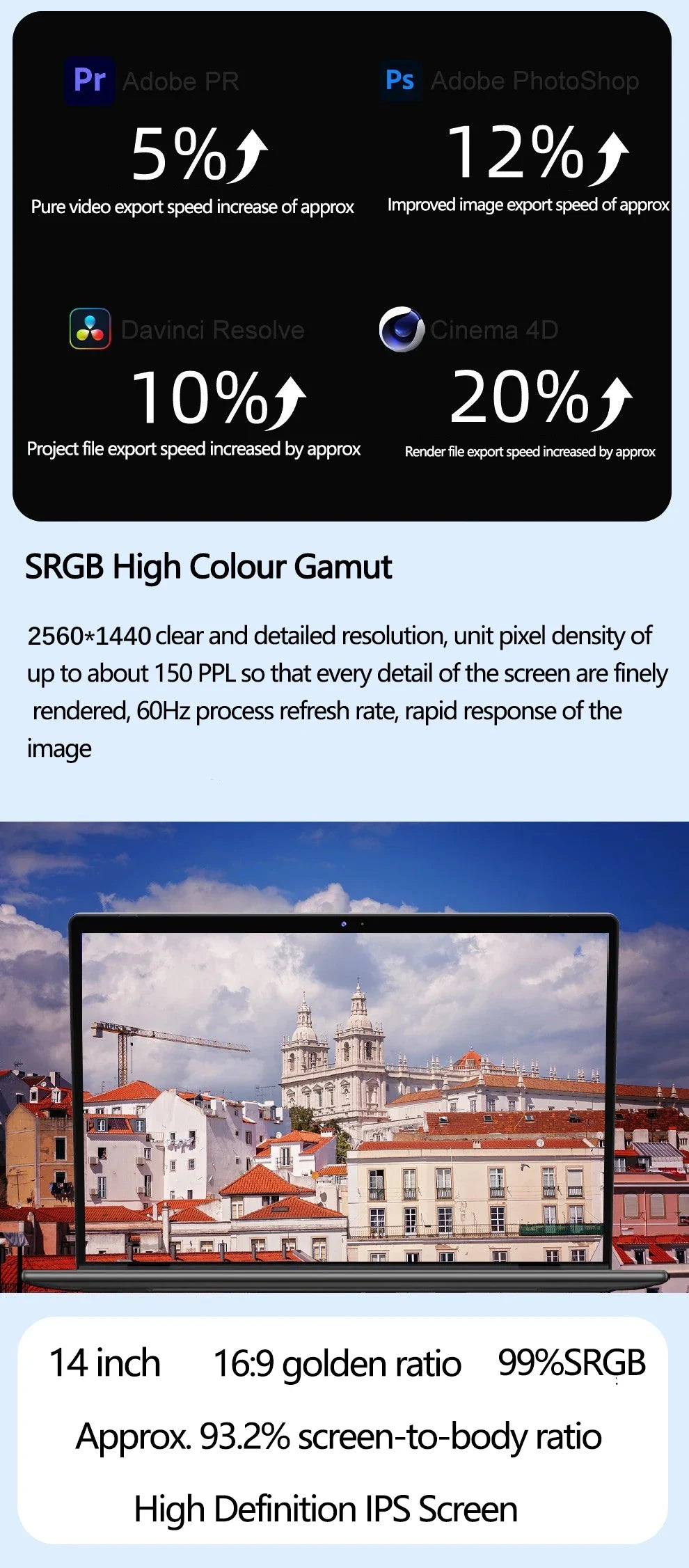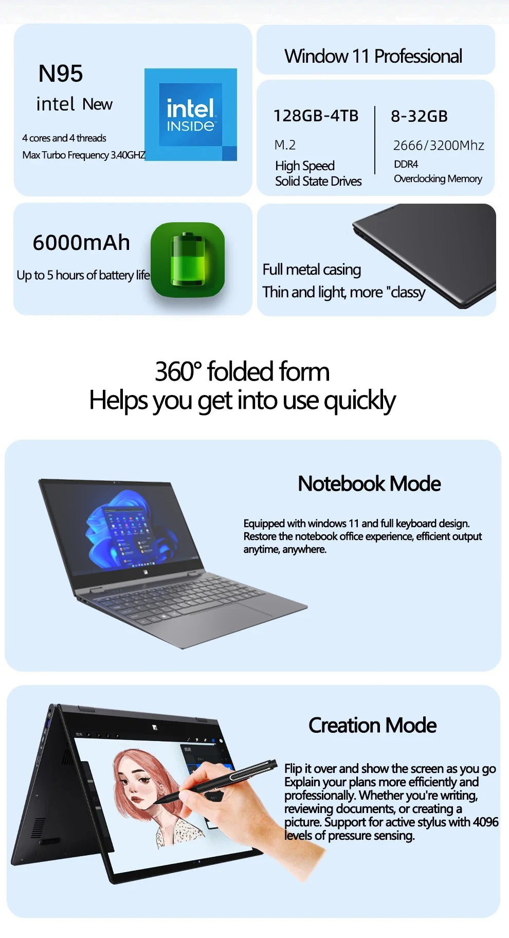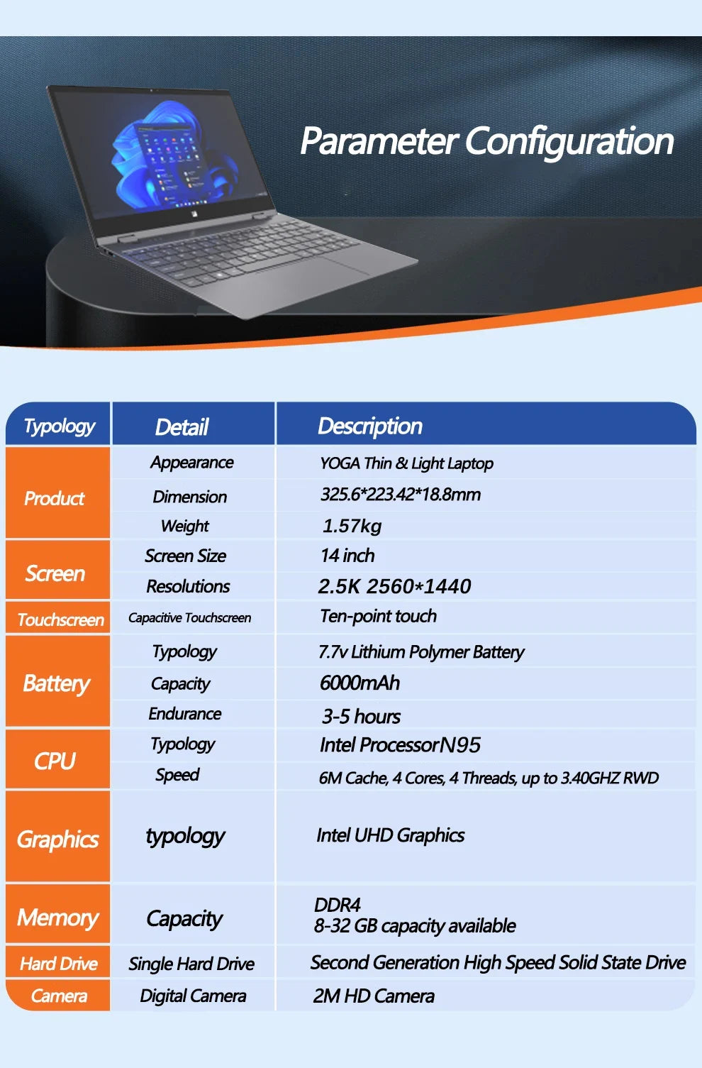 14 inch YOGA Mini Laptop Intel N95 32 GB DDR4 2TB SSD 6000 mAh Tablet 2-in-1 2.5K 2560*1440 Screen Touch 360° Flip Office Study