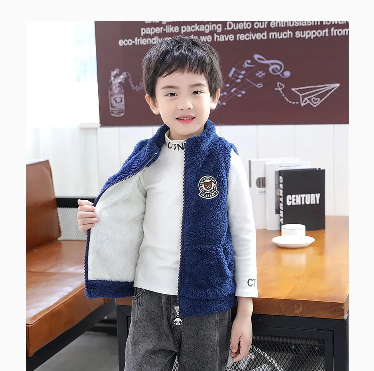 3-12 Years Spring Autumn Girls Vest Fleece Sleeveless Boy Coat Waistcoat Keep Warm Kids Outerwear Girls Jacket Children Clothing