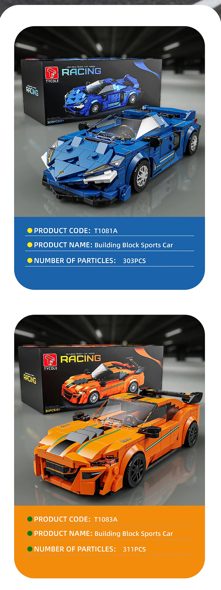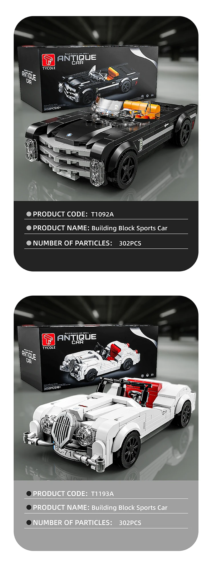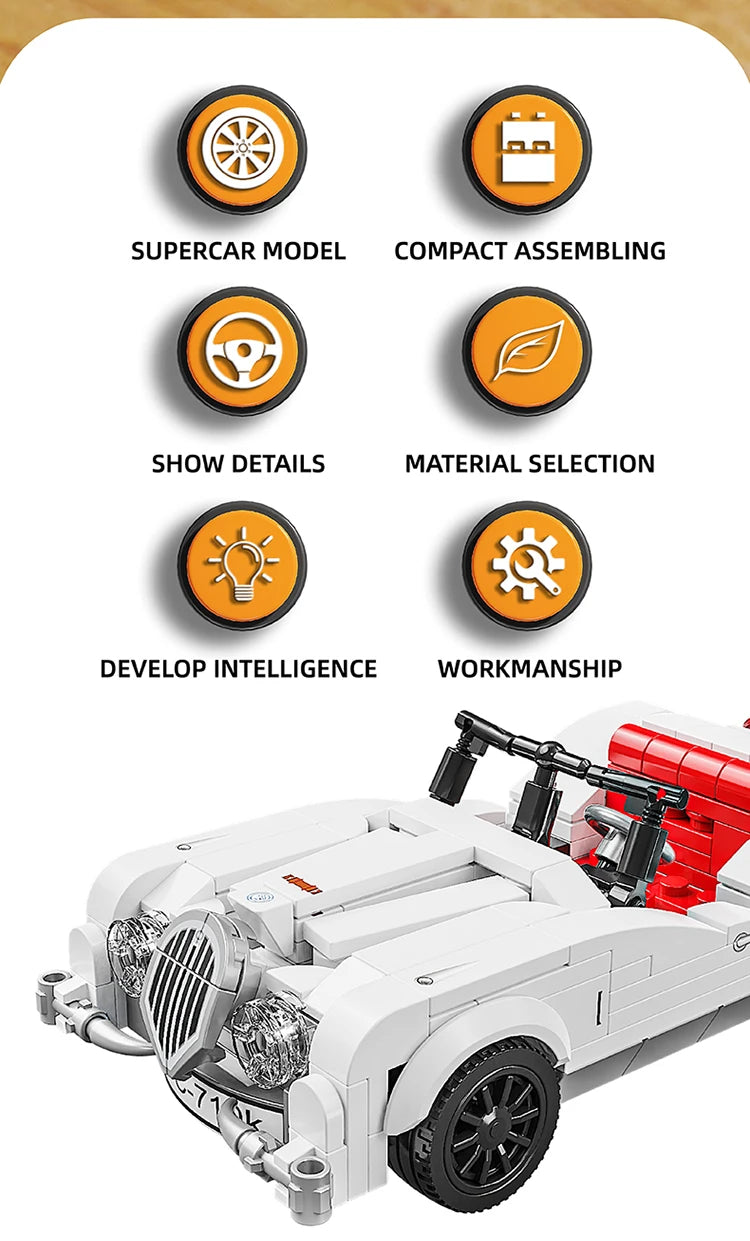 302PCS Building Blocks Sports Car Toy Classic Cars Bricks Model Educational Toys Set With Transparent Display Box Christmas Gift