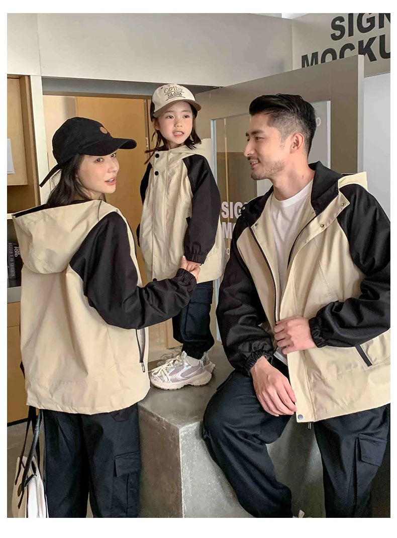 Autumn 2024 New Famliy Outdoor Clothes Fashion Korean Style Dad Mom and Daughter Son Matching Tops Zip Jacket Cargo Pants Outfit