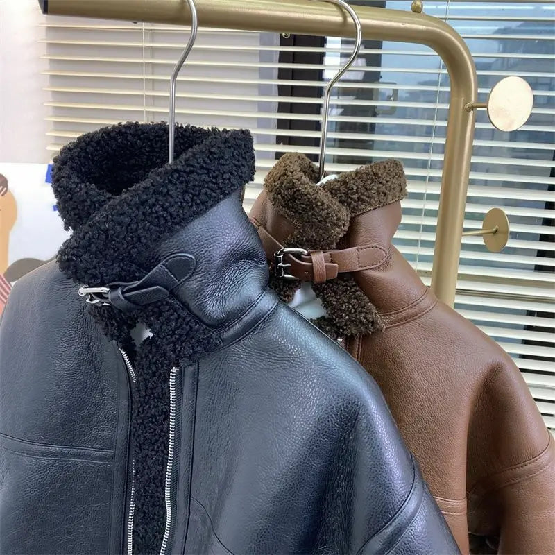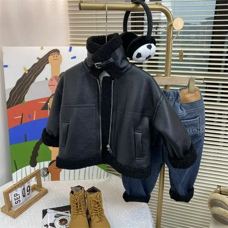 Autumn Winter Boys New Fashion PU Leather Jacket Keep Warm Thicken Winter Coats PU Leather Girls Warm Fleece Jacket
