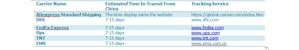 Delivery Time: 15-30 working days to major destinations, not remote countries.