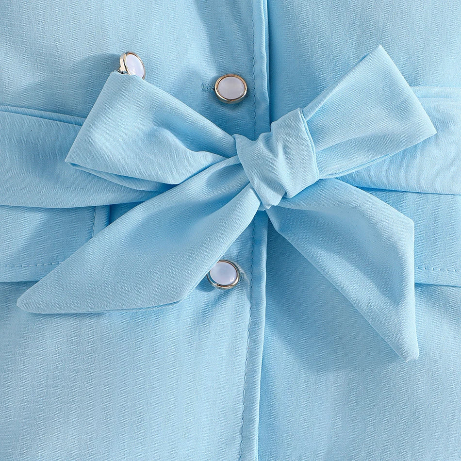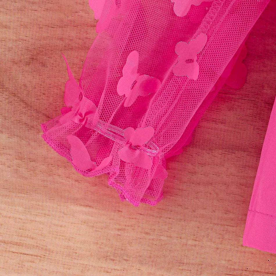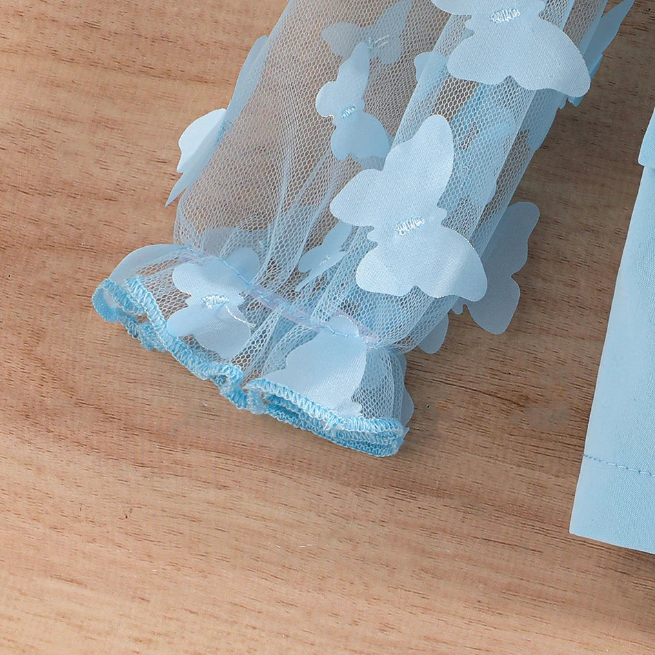 Children Clothing Stylish Girls Kids Autumn Winter Long Sleeve Bow-Tie Mesh-Sleeved Suit Pant Set Everyday Wear Children Sets
