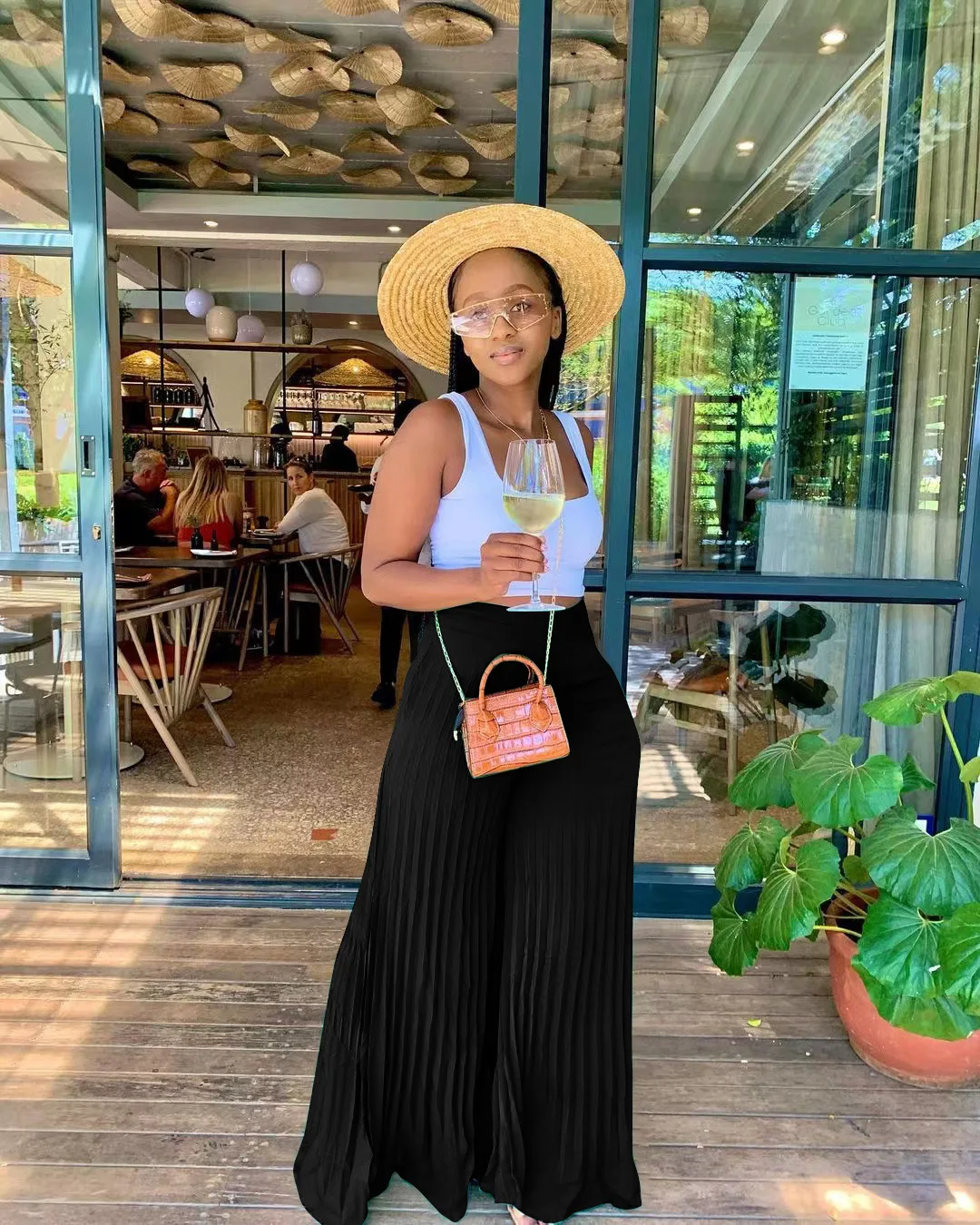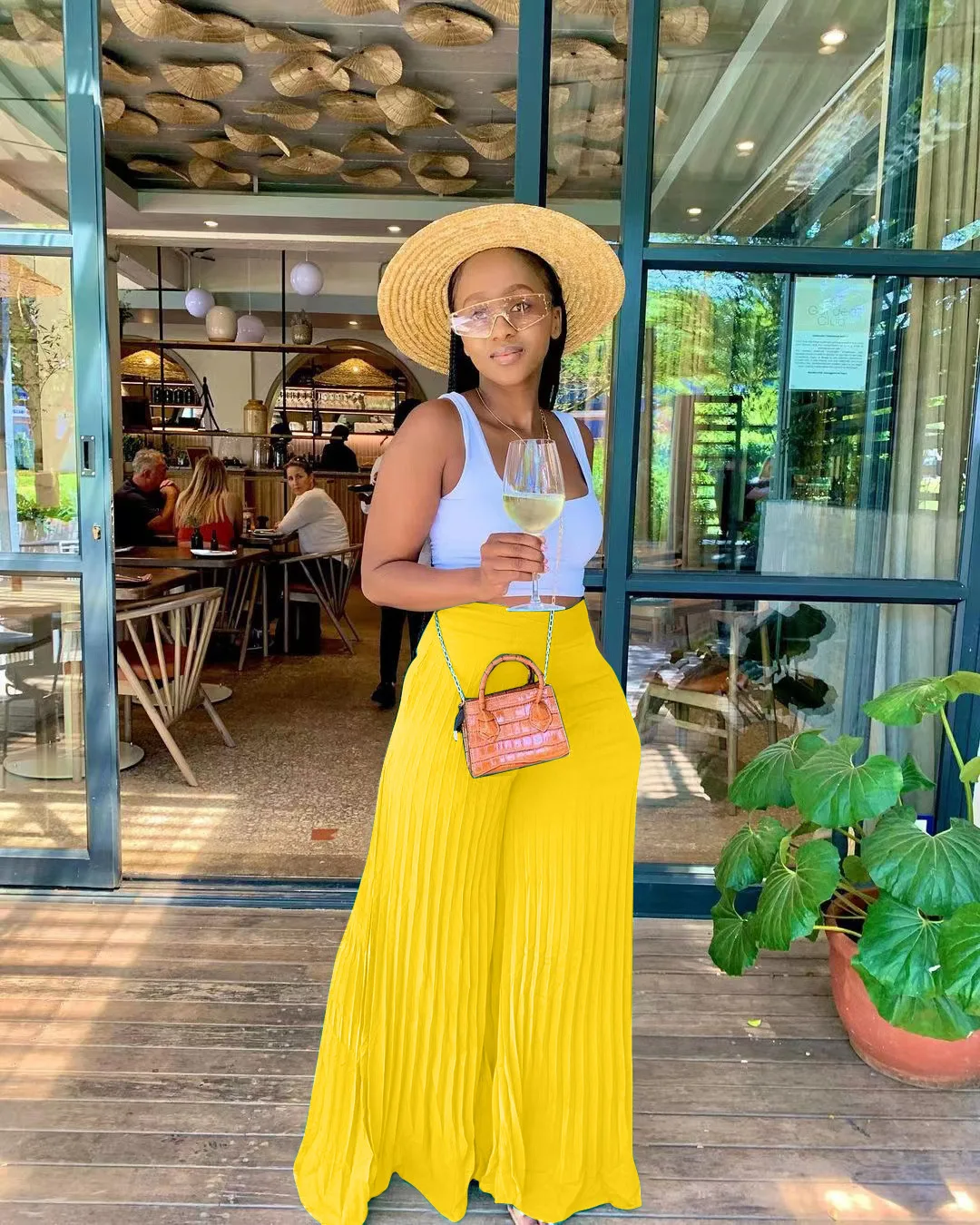 CM.YAYA Elegant Wide Leg Straight High Waist Pleated Pants Women 2022 Summer New Beach Holiday Boho Trousers