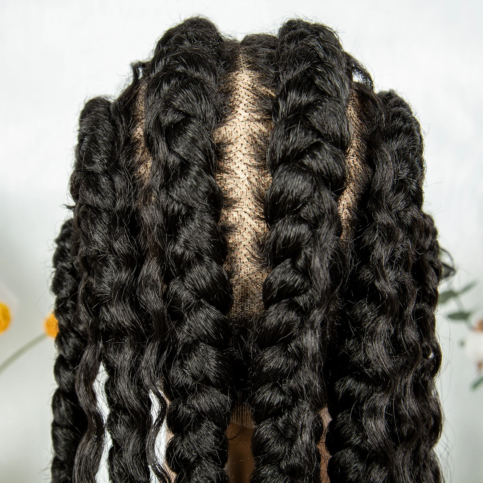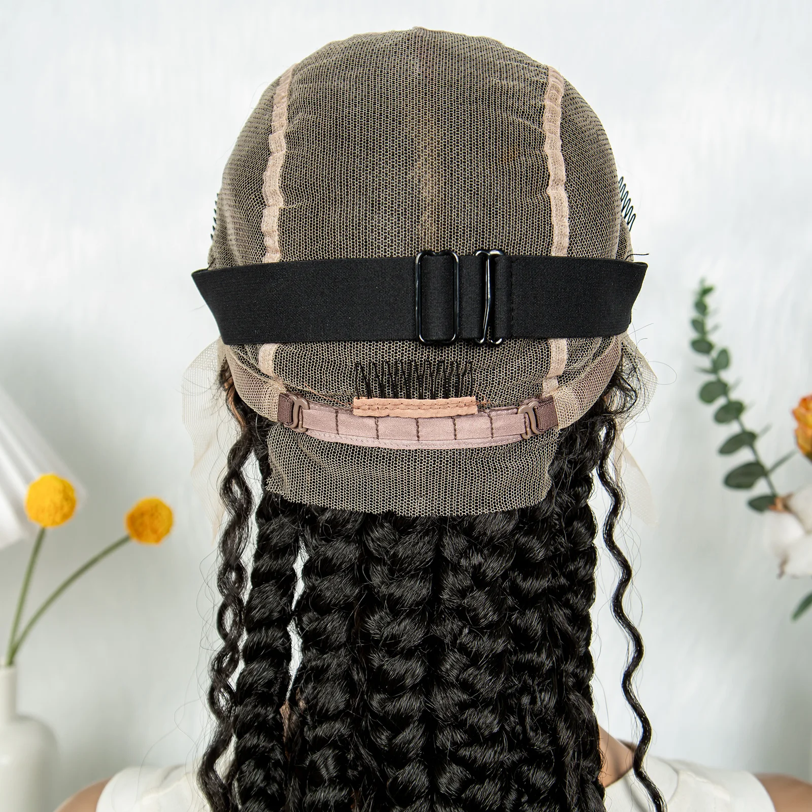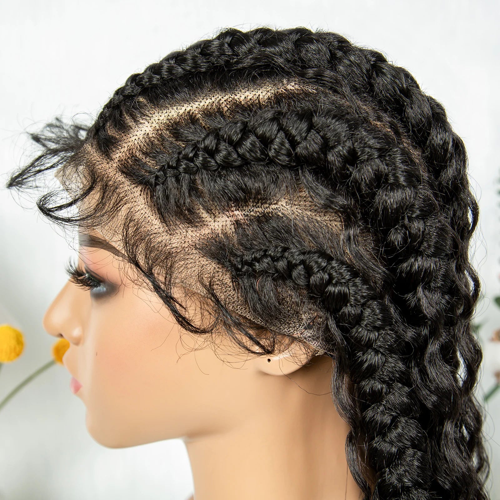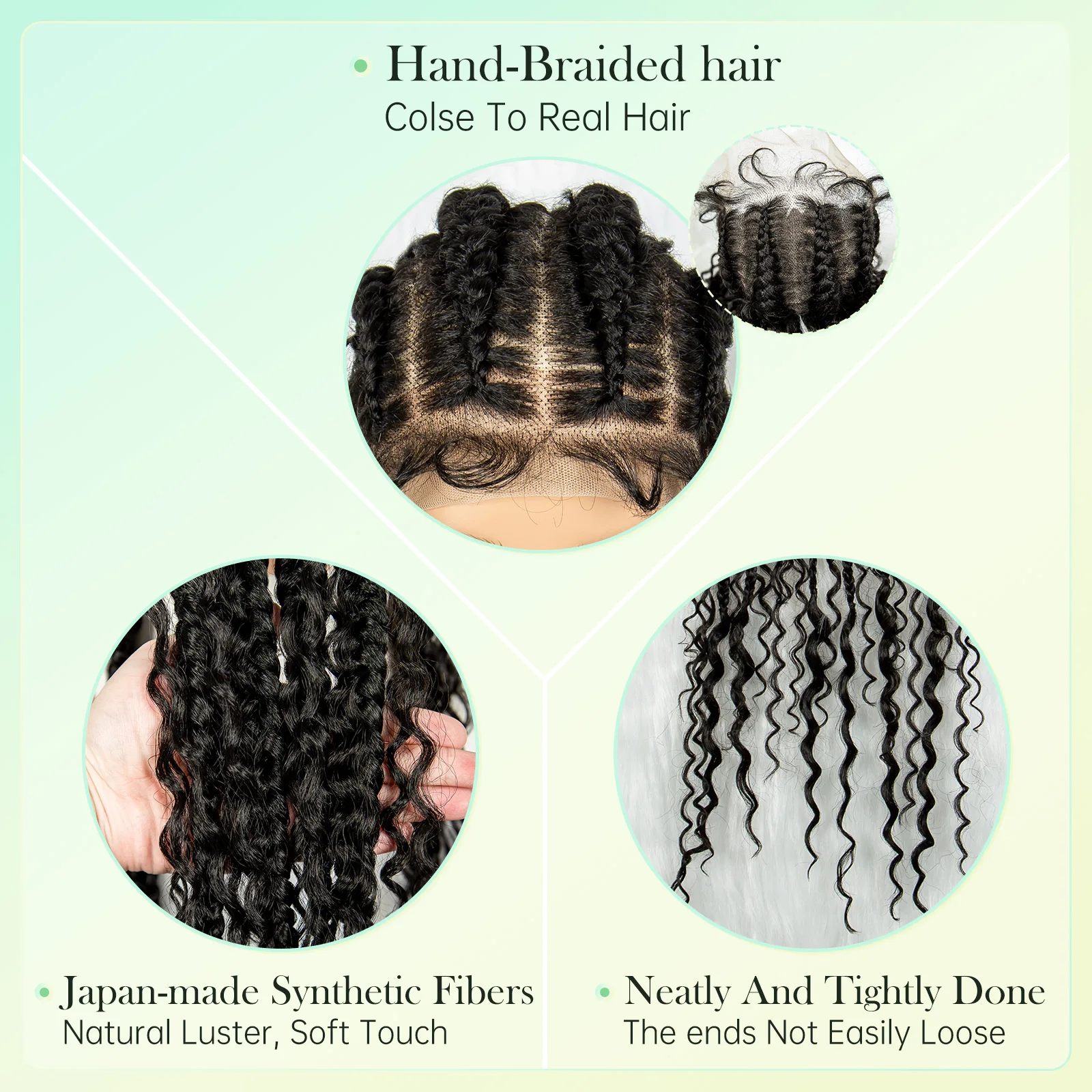 Cornrow Braided Wigs with Curly Ends Knotless Lace Frontal Braids Wig Synthetic Full Lace Braided Wigs with Baby Hair for Women