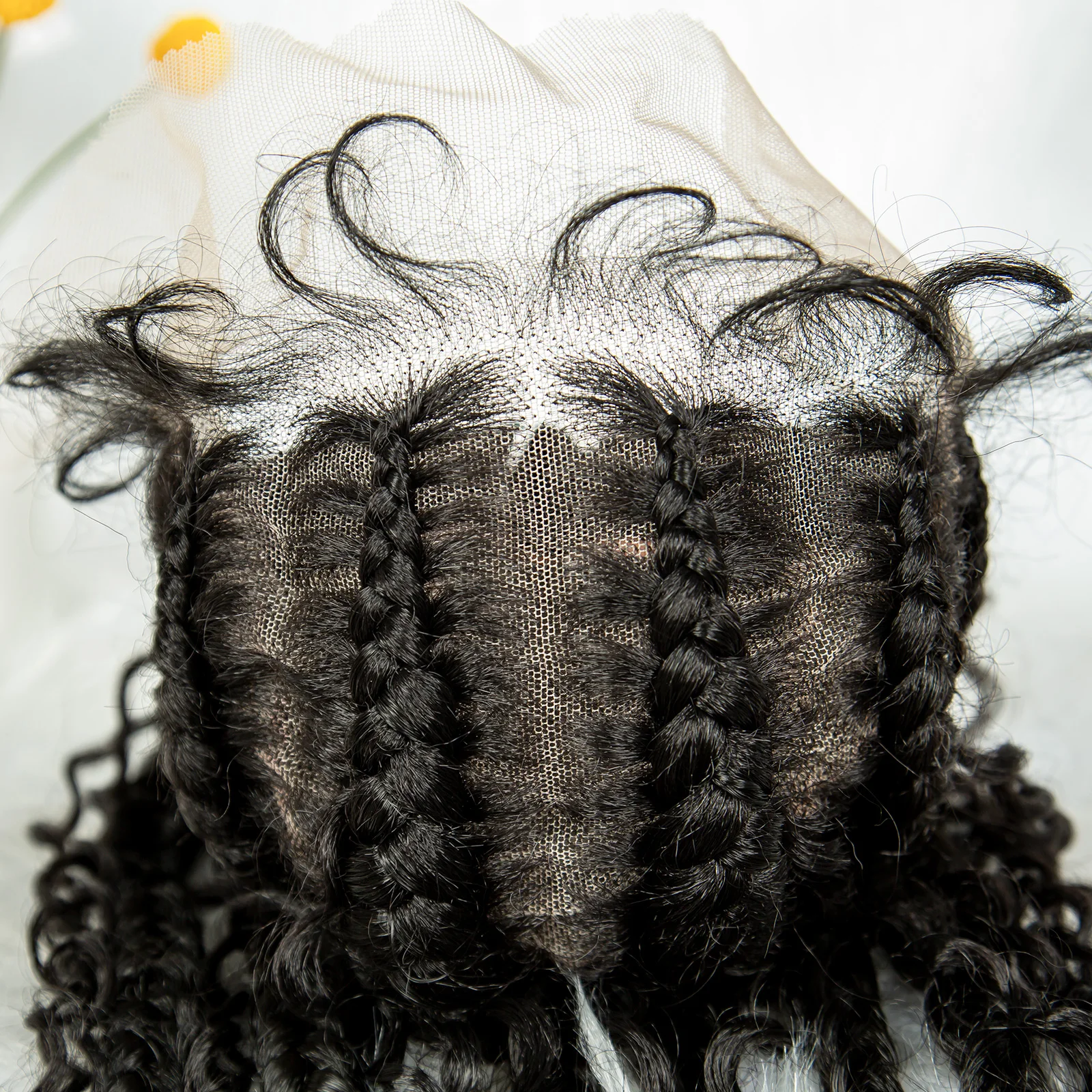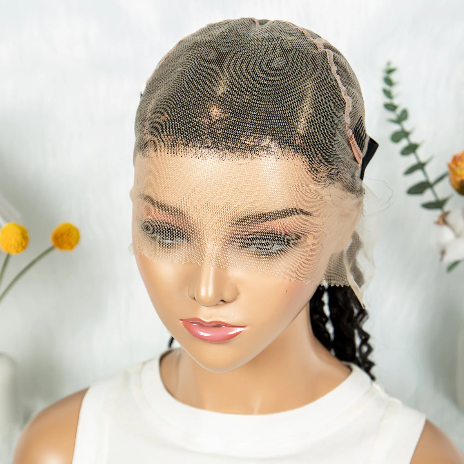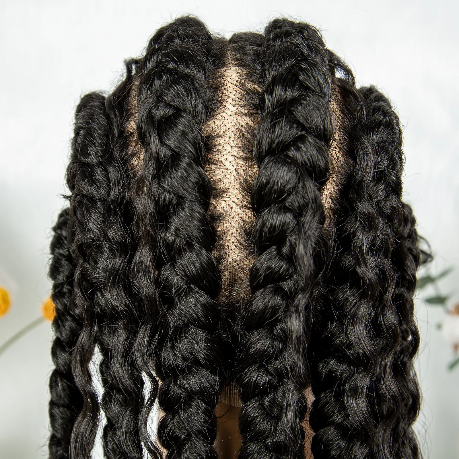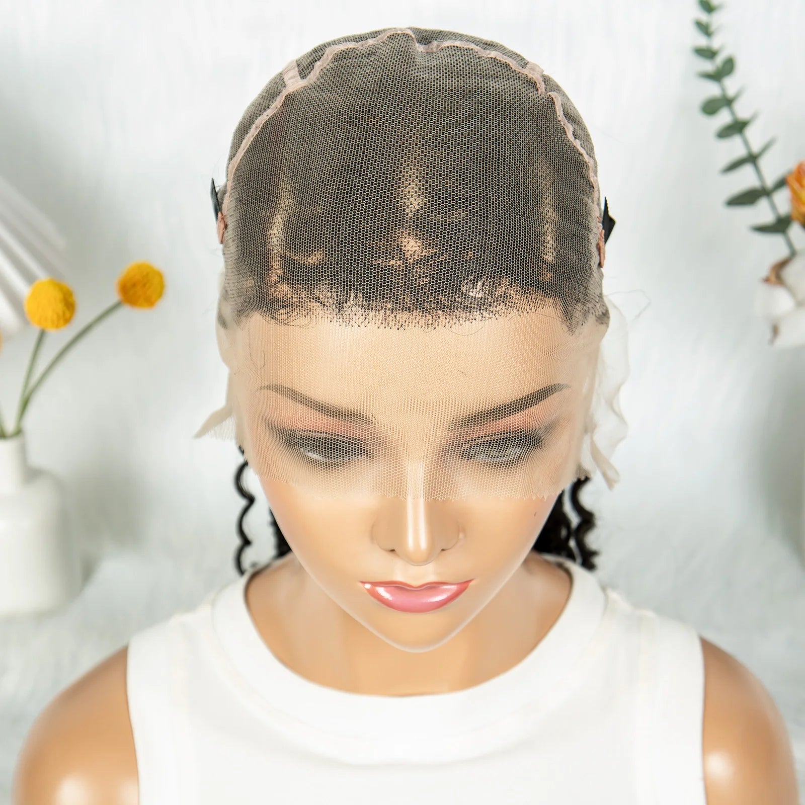 Cornrow Braided Wigs with Curly Ends Knotless Lace Frontal Braids Wig Synthetic Full Lace Braided Wigs with Baby Hair for Women