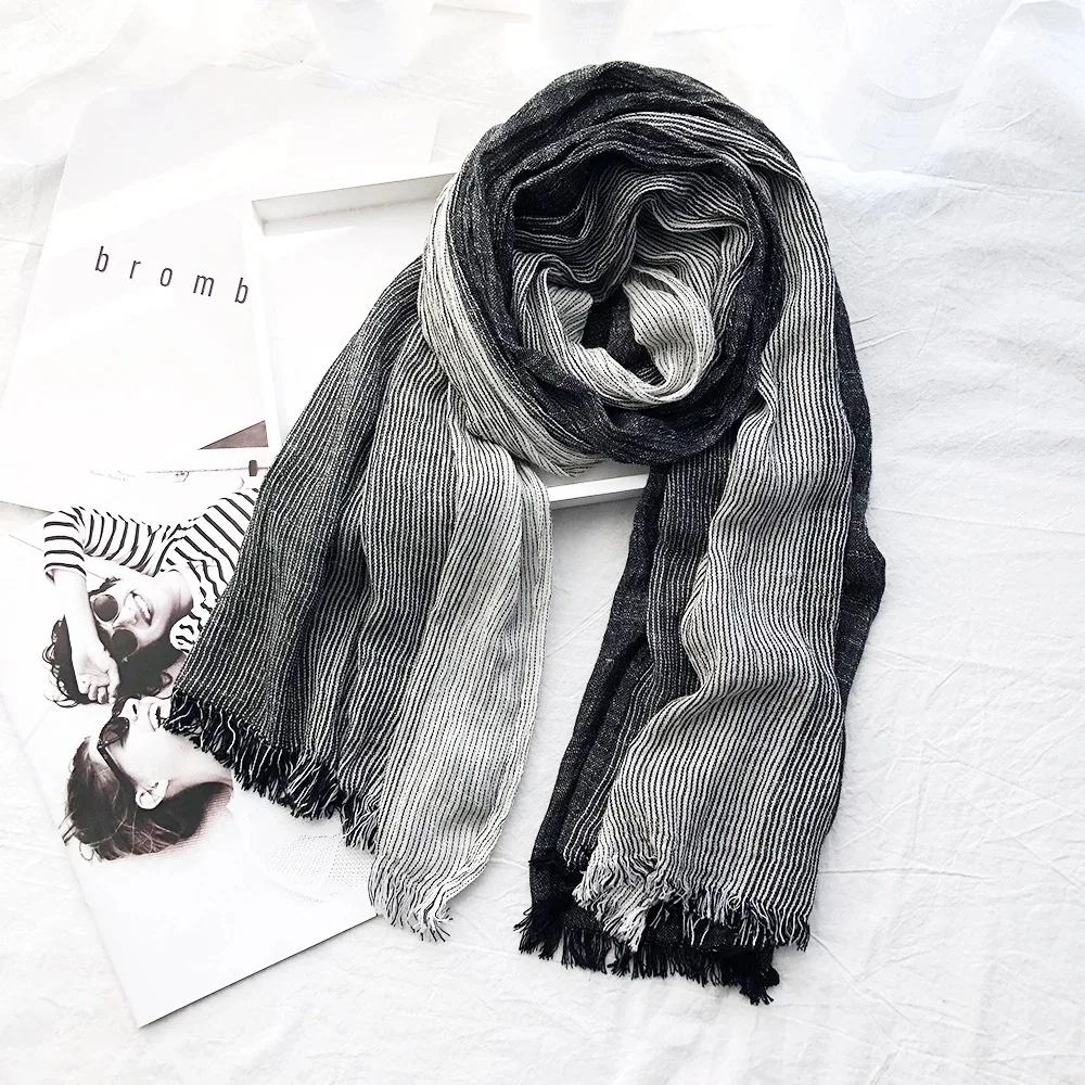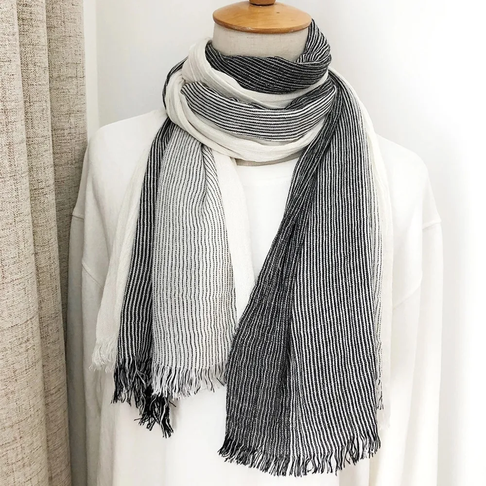 Cotton Linen Striped Scarf for Men Autumn Winter Men's Scarves Soft Warm Neckerchief Male Accessories Bufandas Shawls