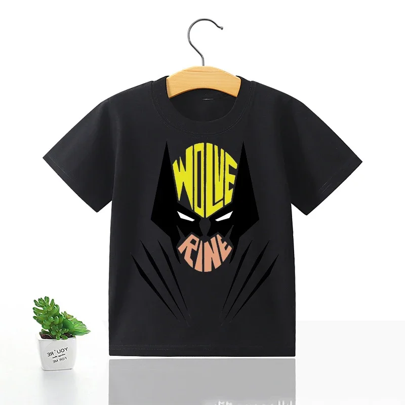 Deadpool & Wolverine Black T-shirt Summer Pop Clothing Cartoon Round Neck Loose Marvels Movie Character Children Birthday Gift
