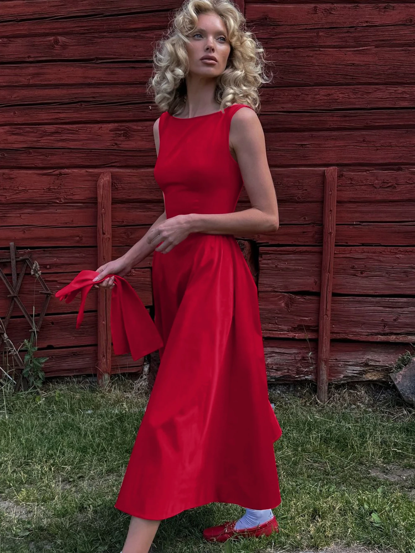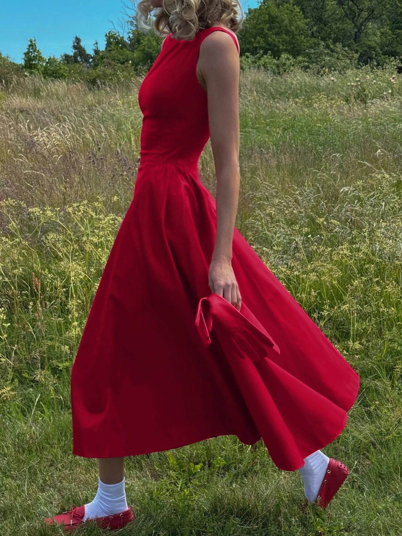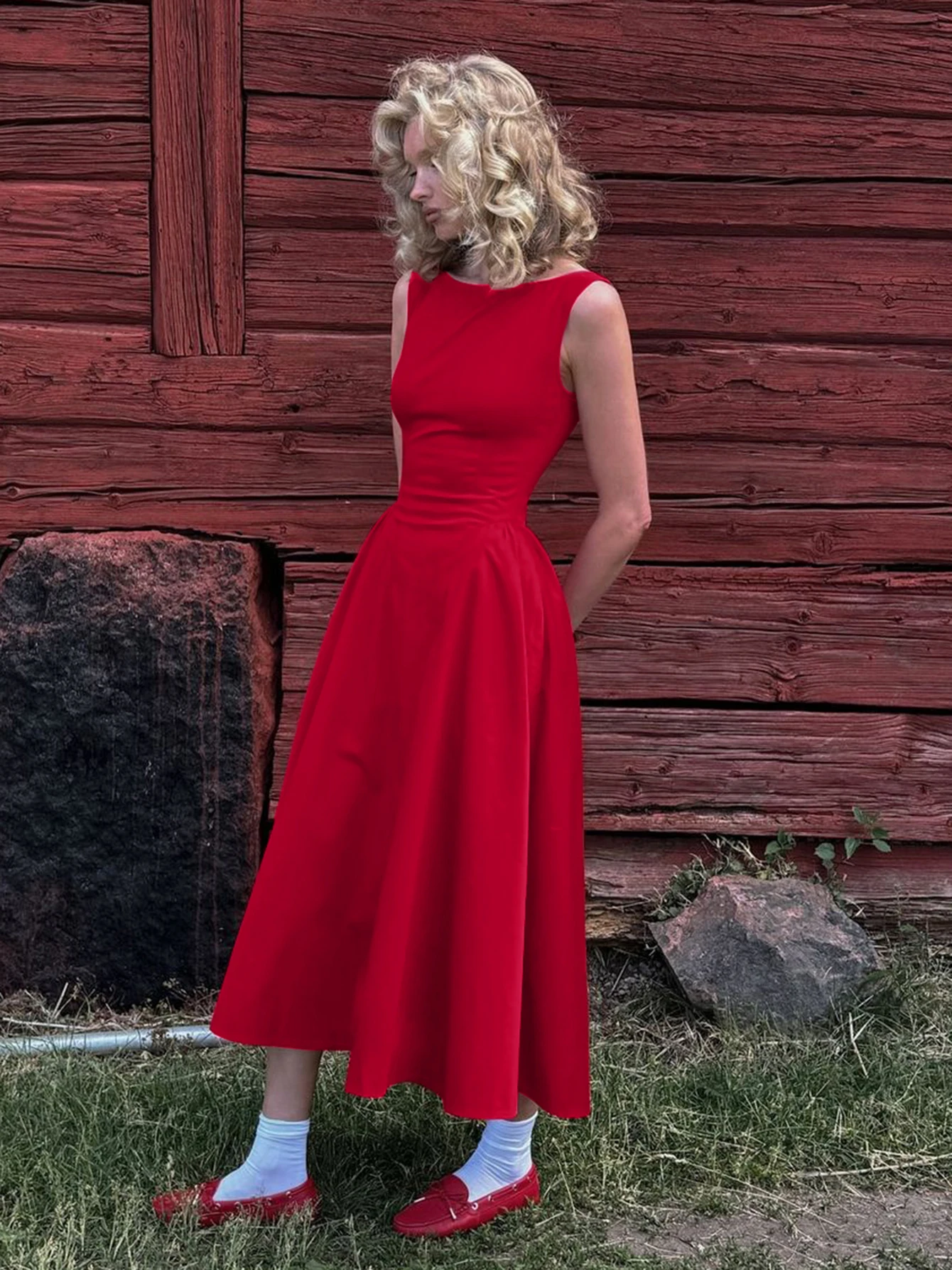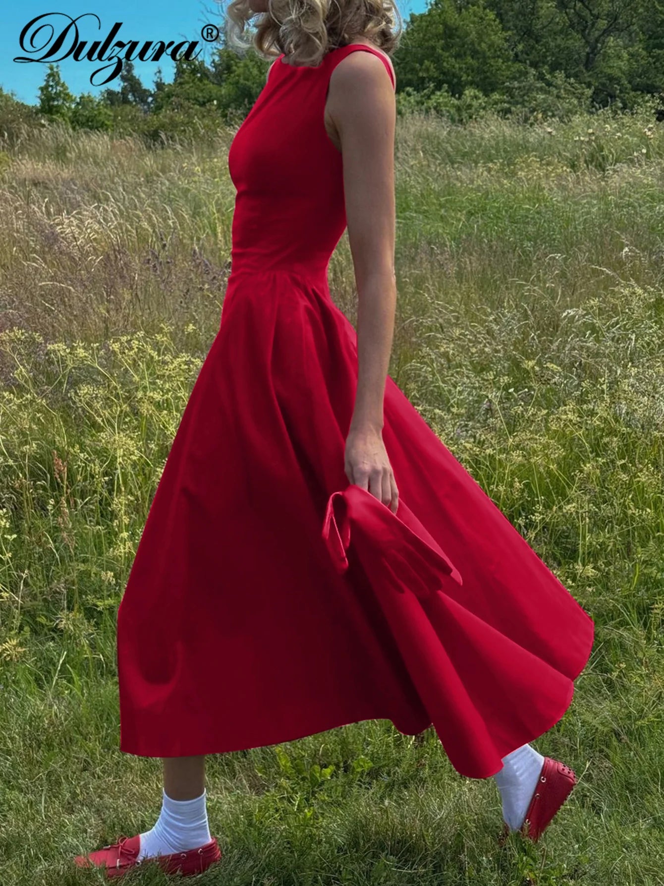 Dulzura O-Neck Sleeveless Zipper A-Line Midi Dress Solid Sexy Elegant Casual Outfit Party Club Streetwear Autumn Winter