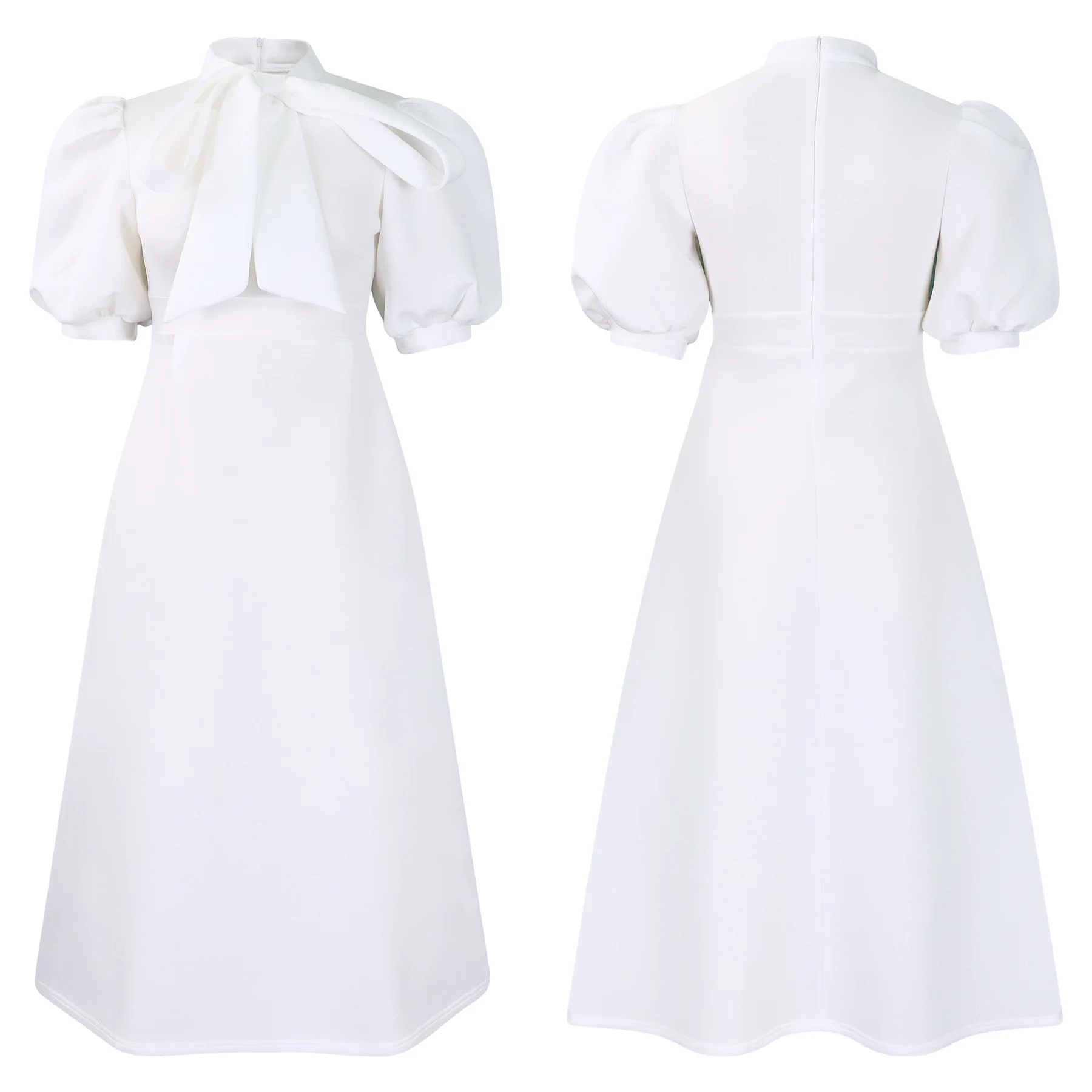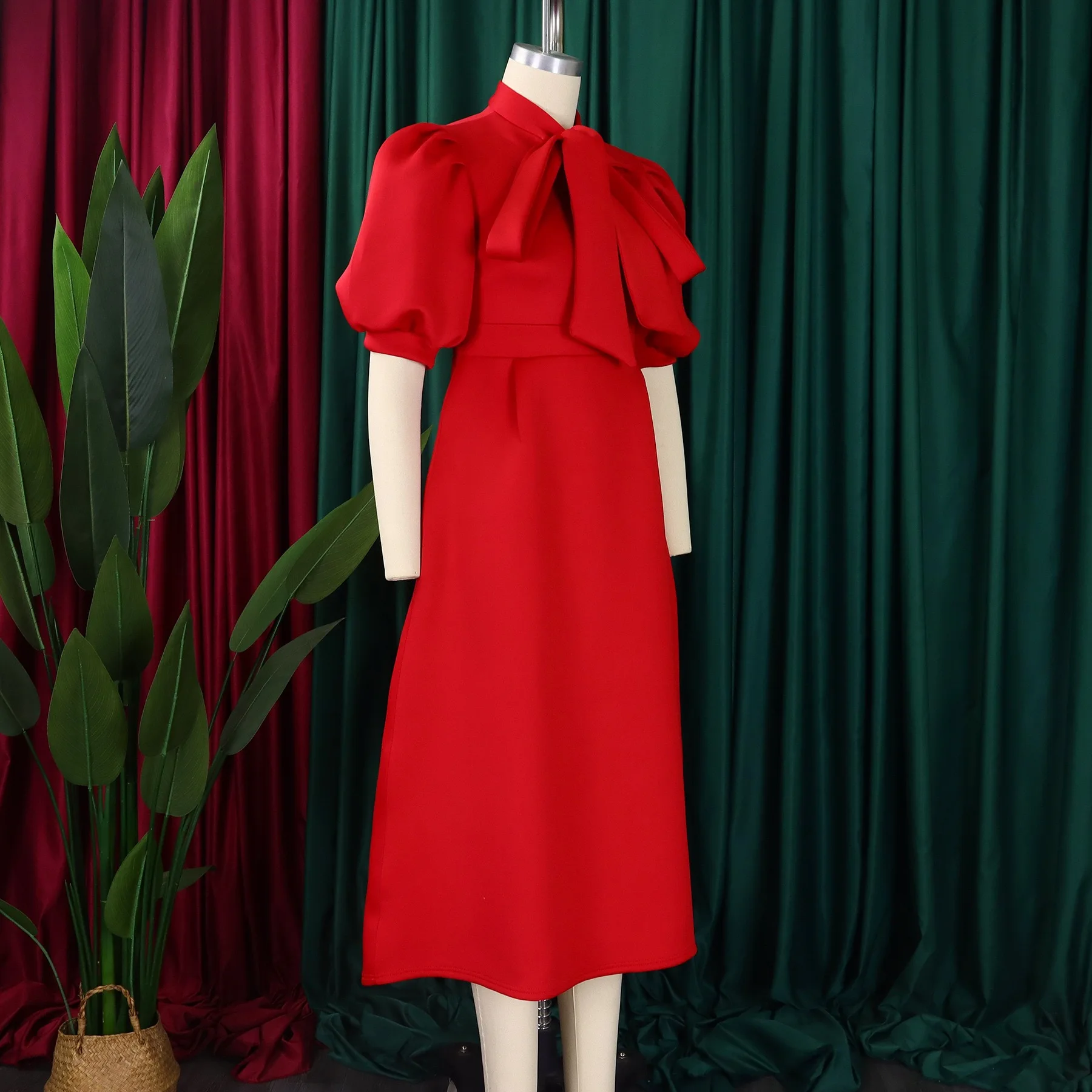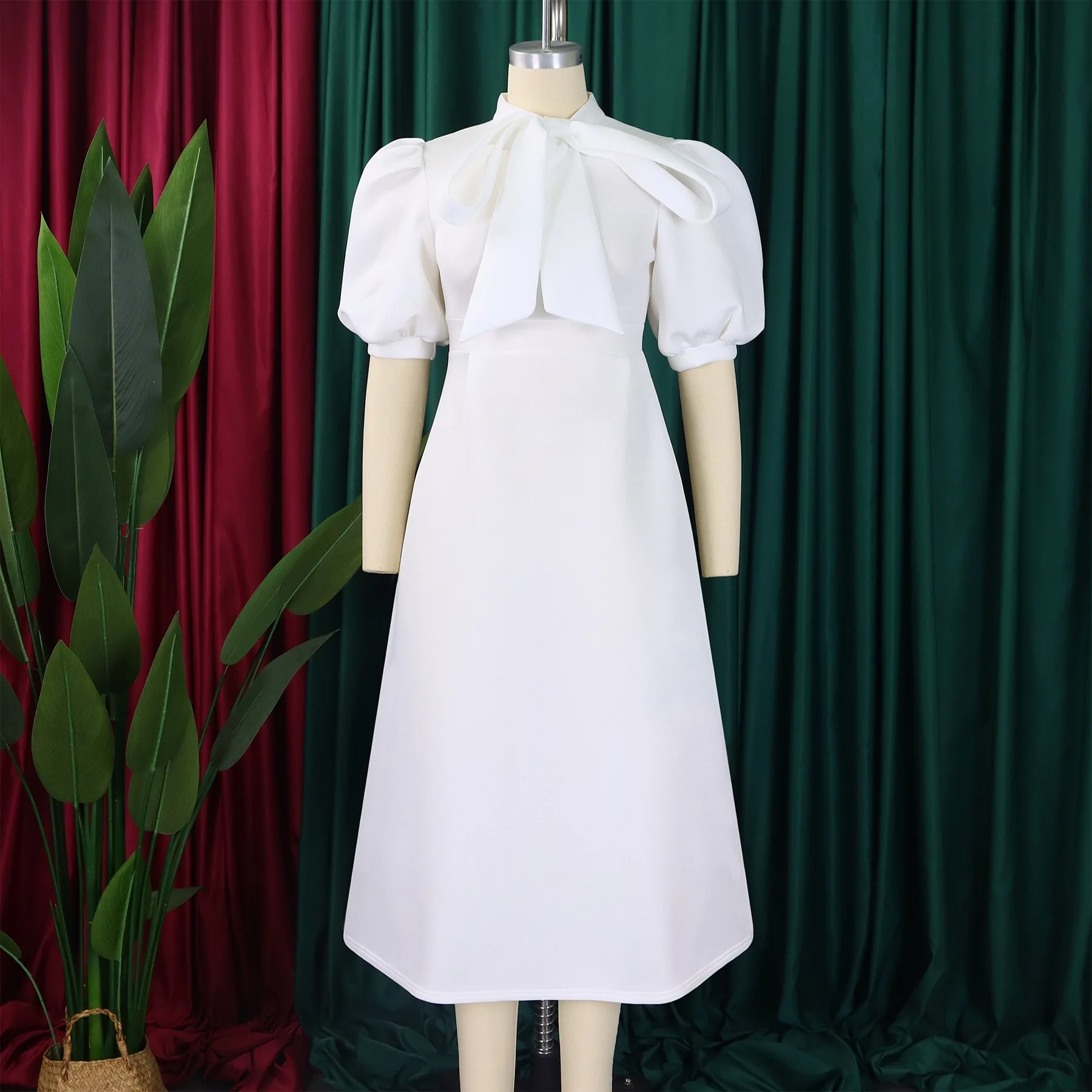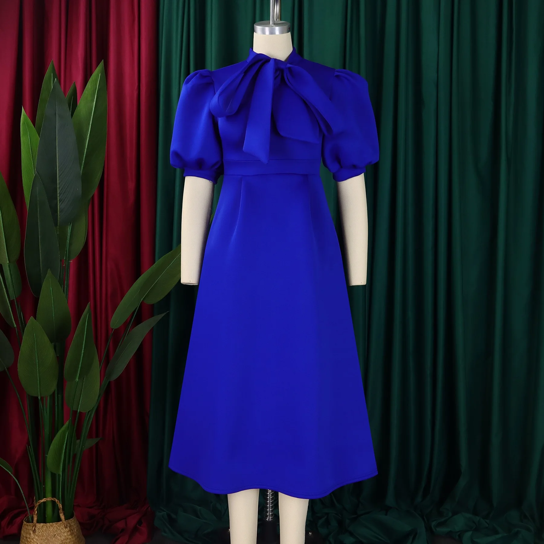 Elegant Party Dresses for Woman 2024 Luxury Bow Collar Short Sleeve High Waisted A Line Pleated Ankle Length Birthday Party Robe