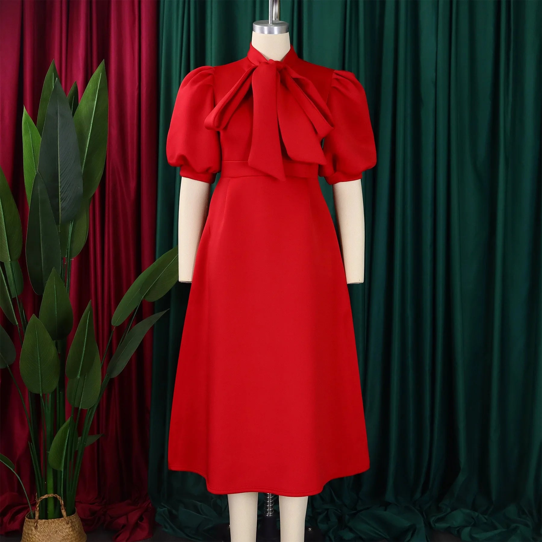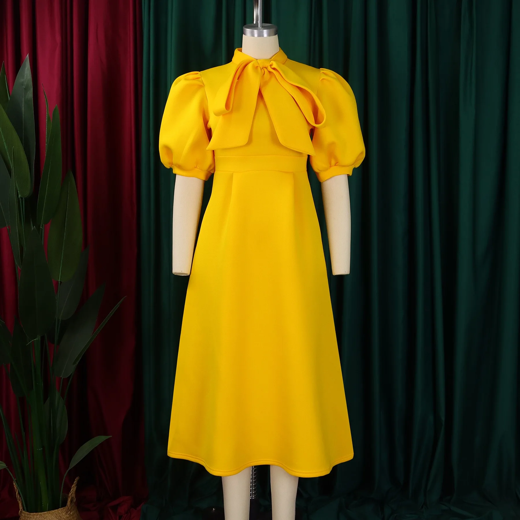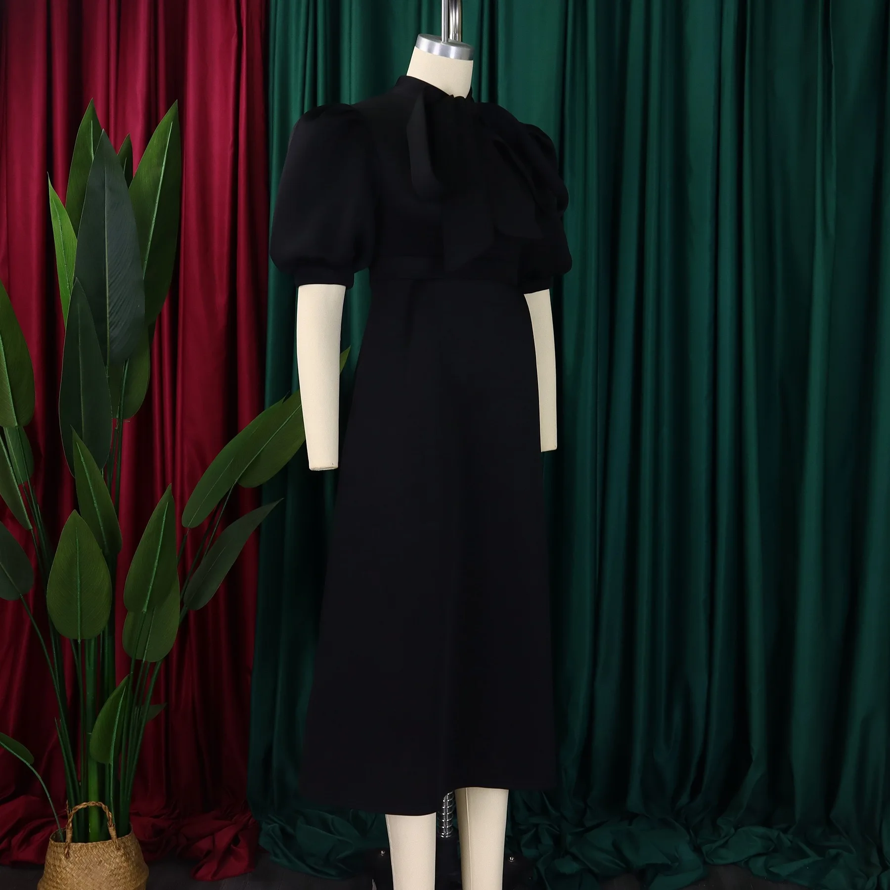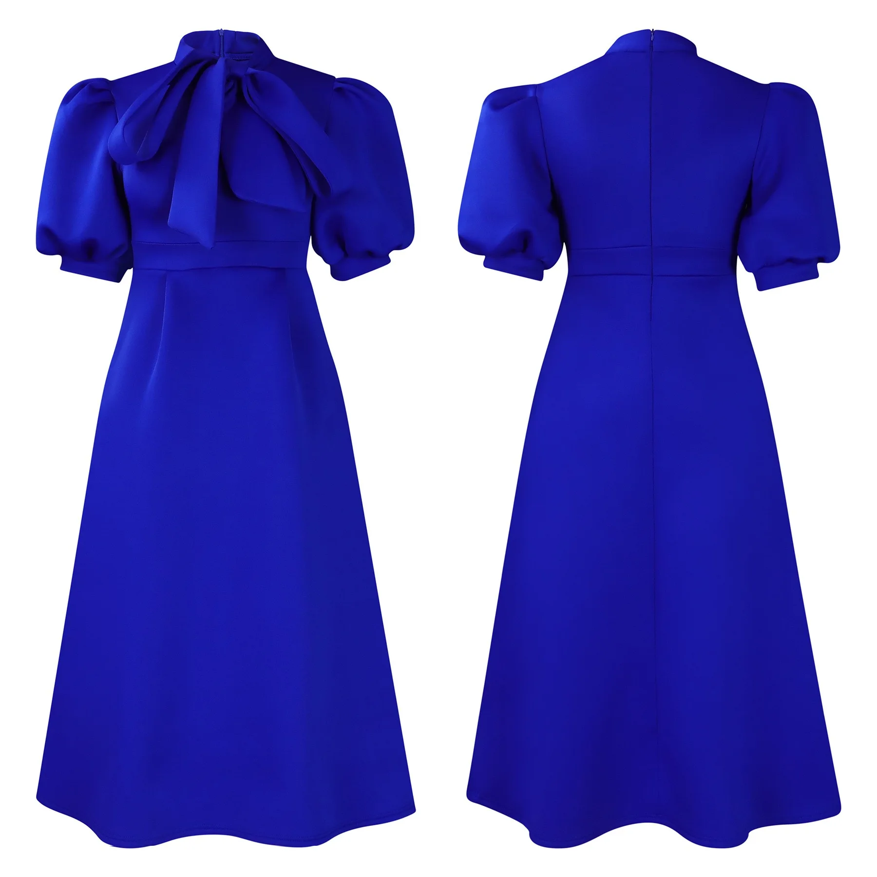 Elegant Party Dresses for Woman 2024 Luxury Bow Collar Short Sleeve High Waisted A Line Pleated Ankle Length Birthday Party Robe