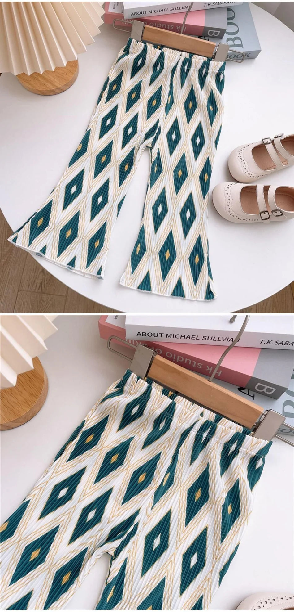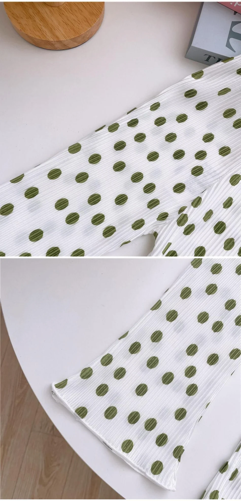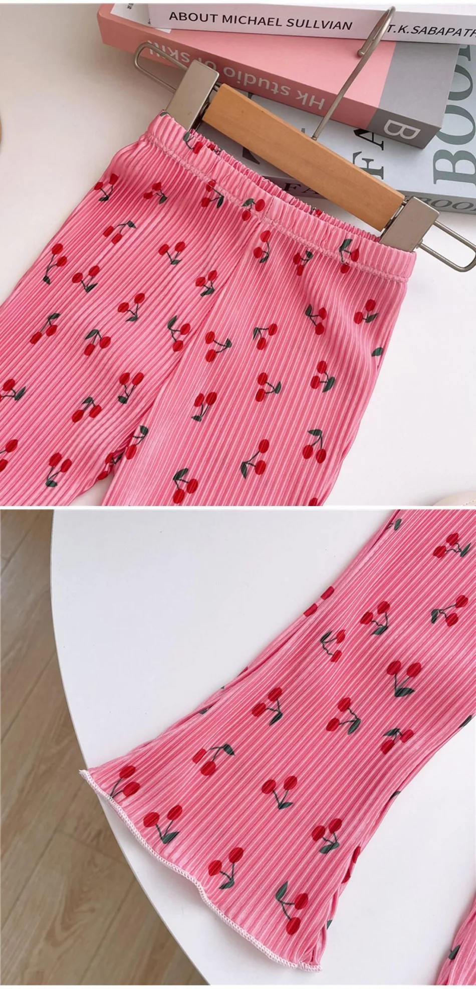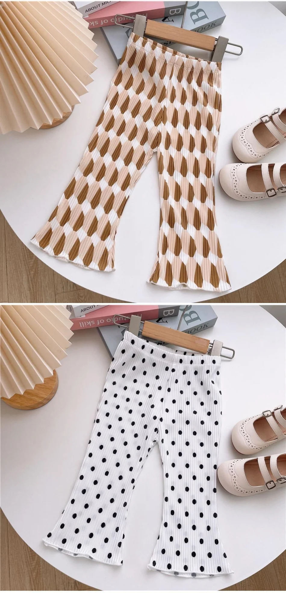 Name: Elegant Playful Girls Floral Polka Dot Flared Pants Summer Autumn Outdoor Casual Bottoms Children Kids Cartoon Fashion Capris