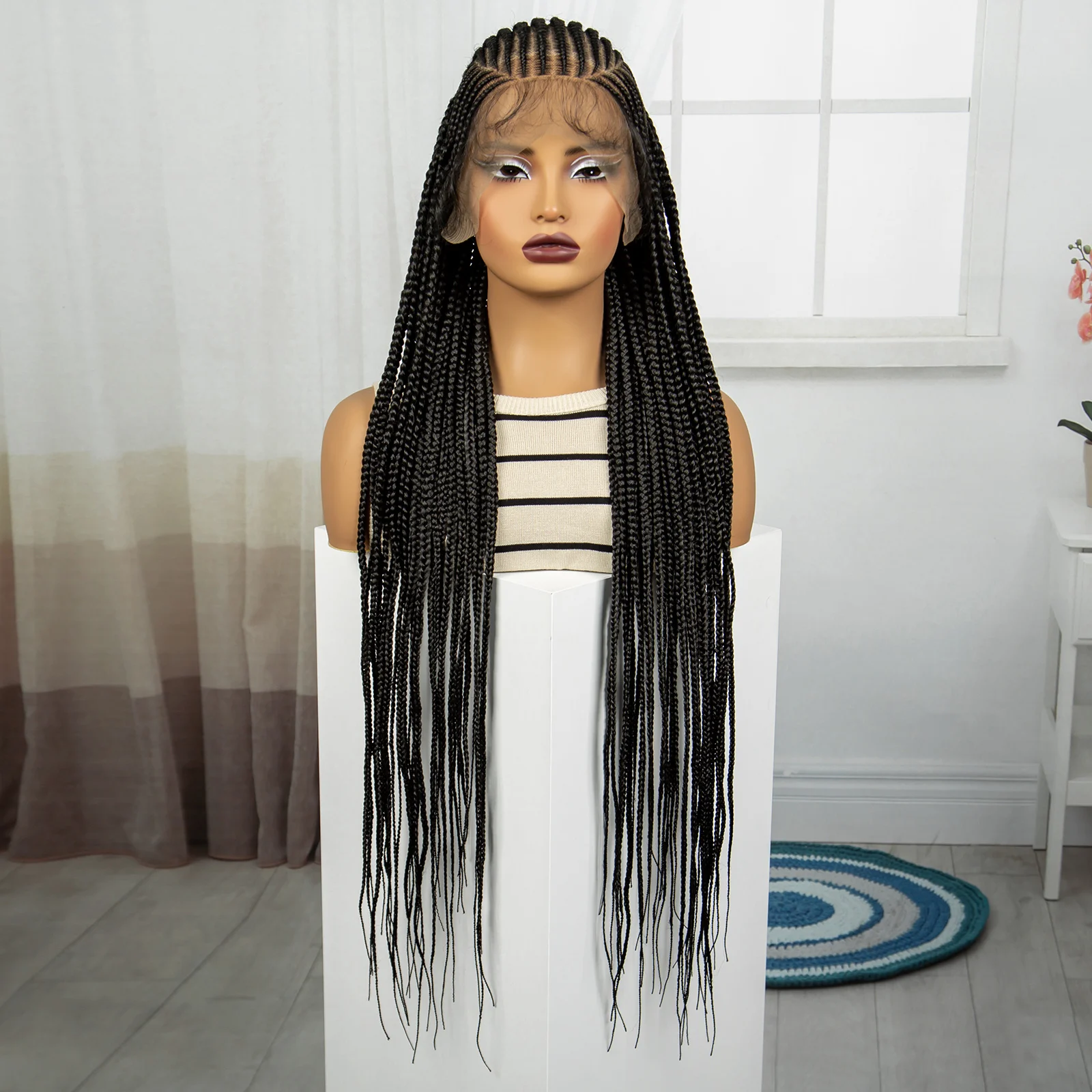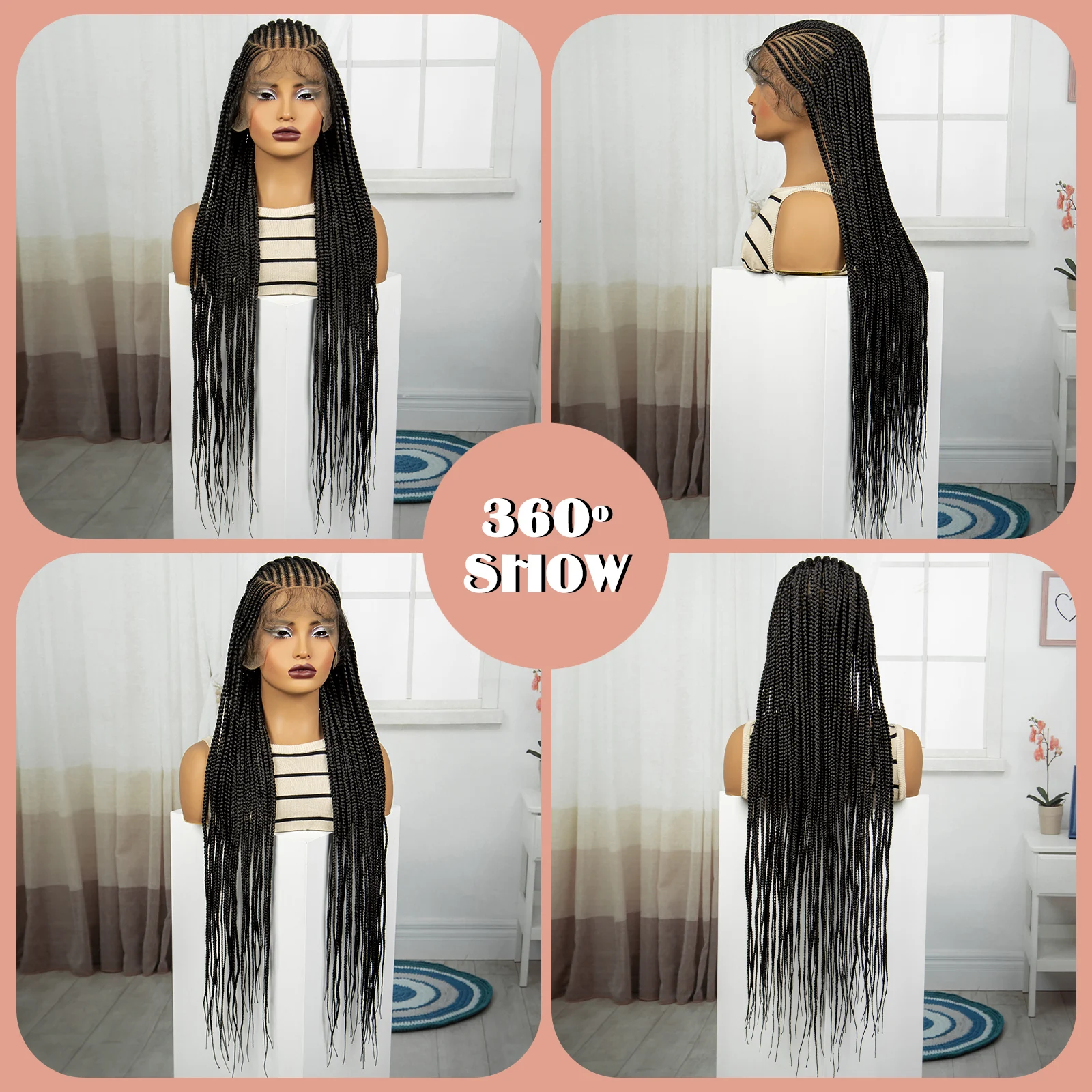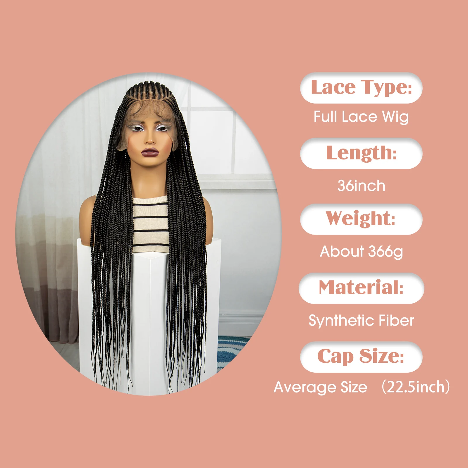Full Lace Cornrow Braided Wigs 36inch Synthetic Natural Box Braided Lace Wigs with Baby Hair for Black Women