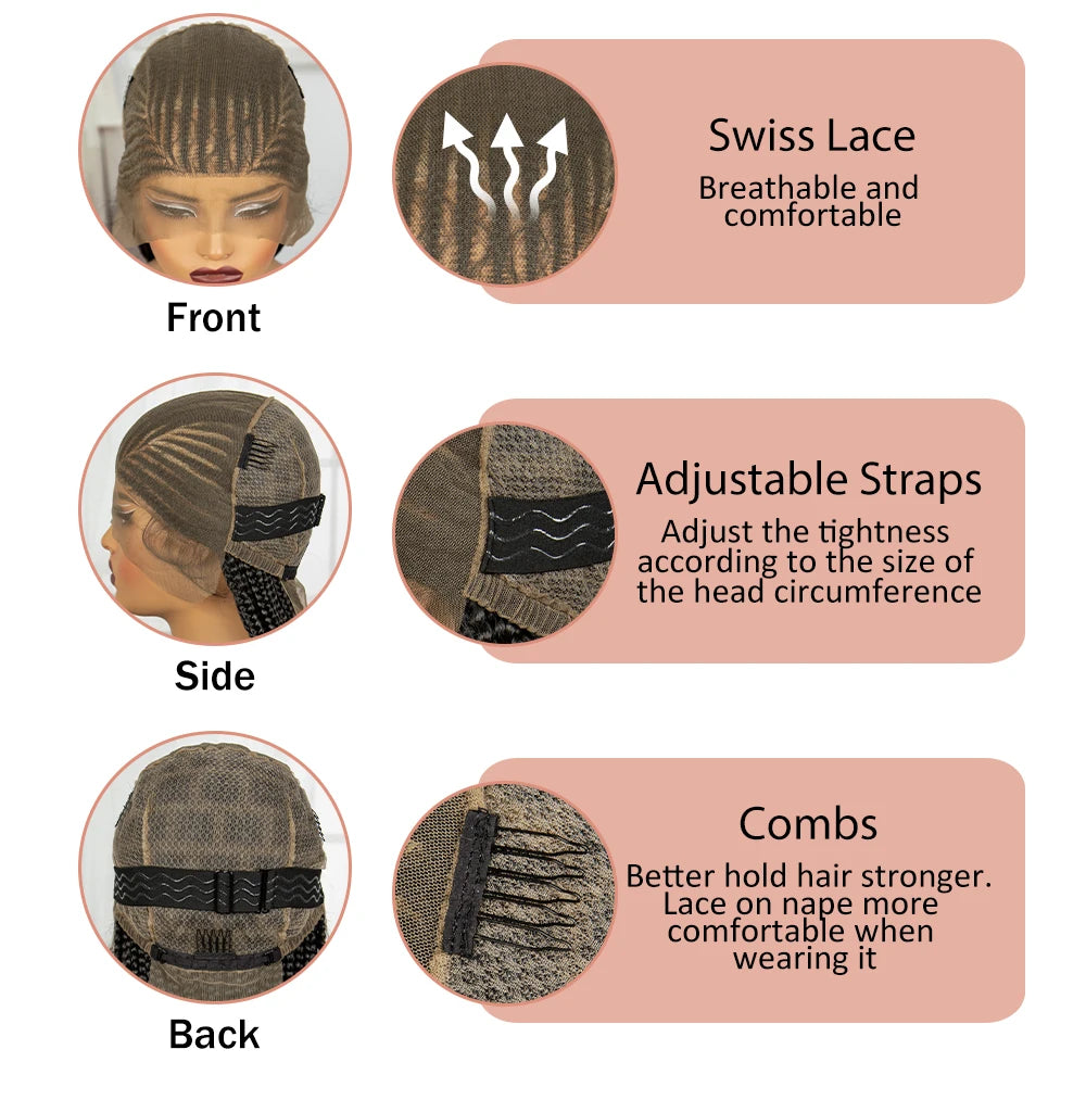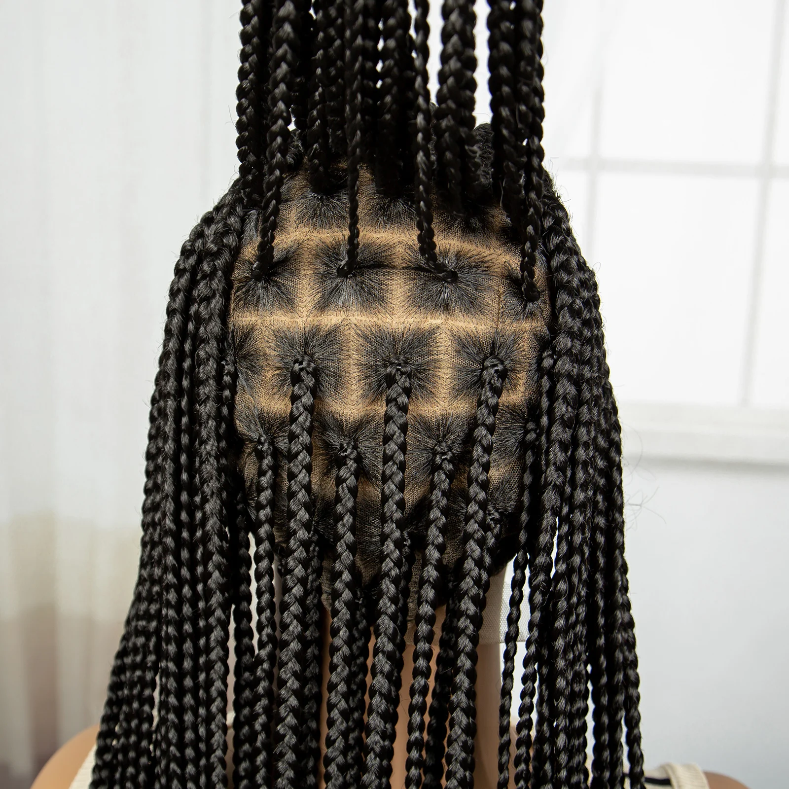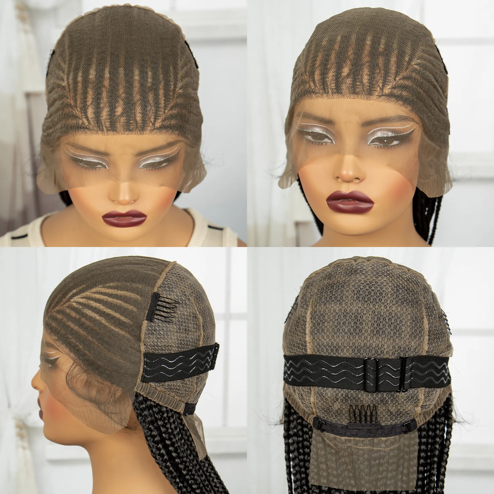 Full Lace Cornrow Braided Wigs 36inch Synthetic Natural Box Braided Lace Wigs with Baby Hair for Black Women
