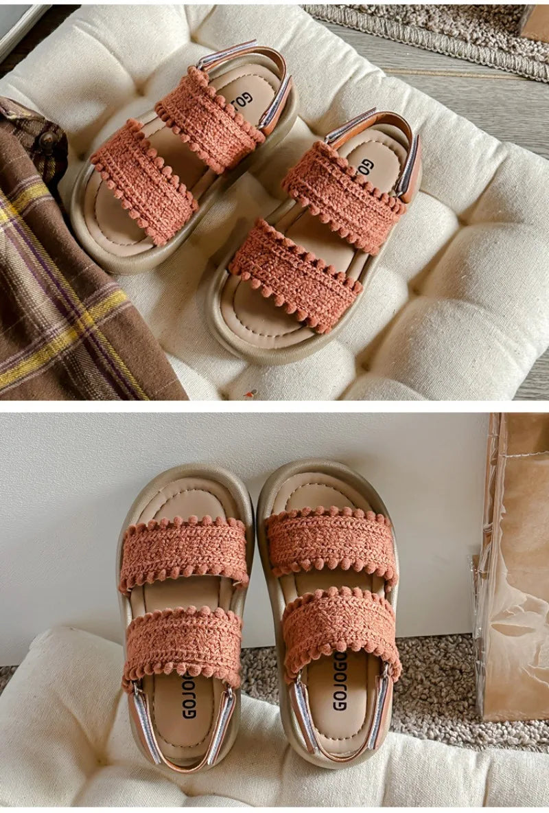 Girls' Sandals Open Toe Baby Shoes for Little Girls Sweet Casual Soft Sole Straight Strap Beach Slipper Flats Size 21-30