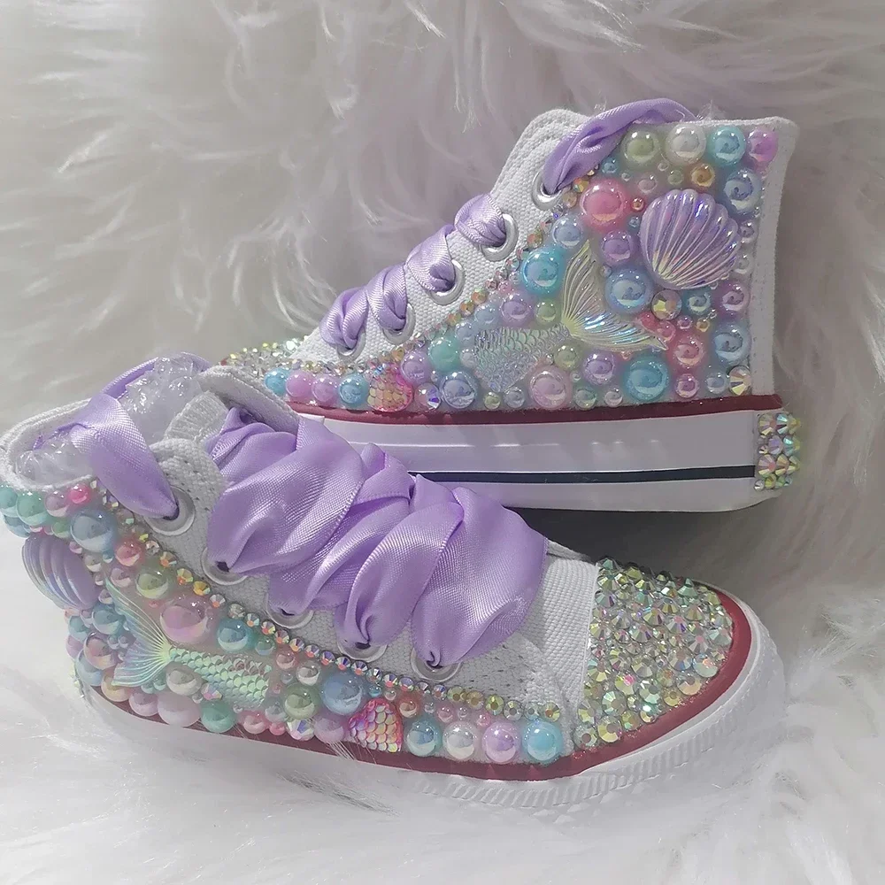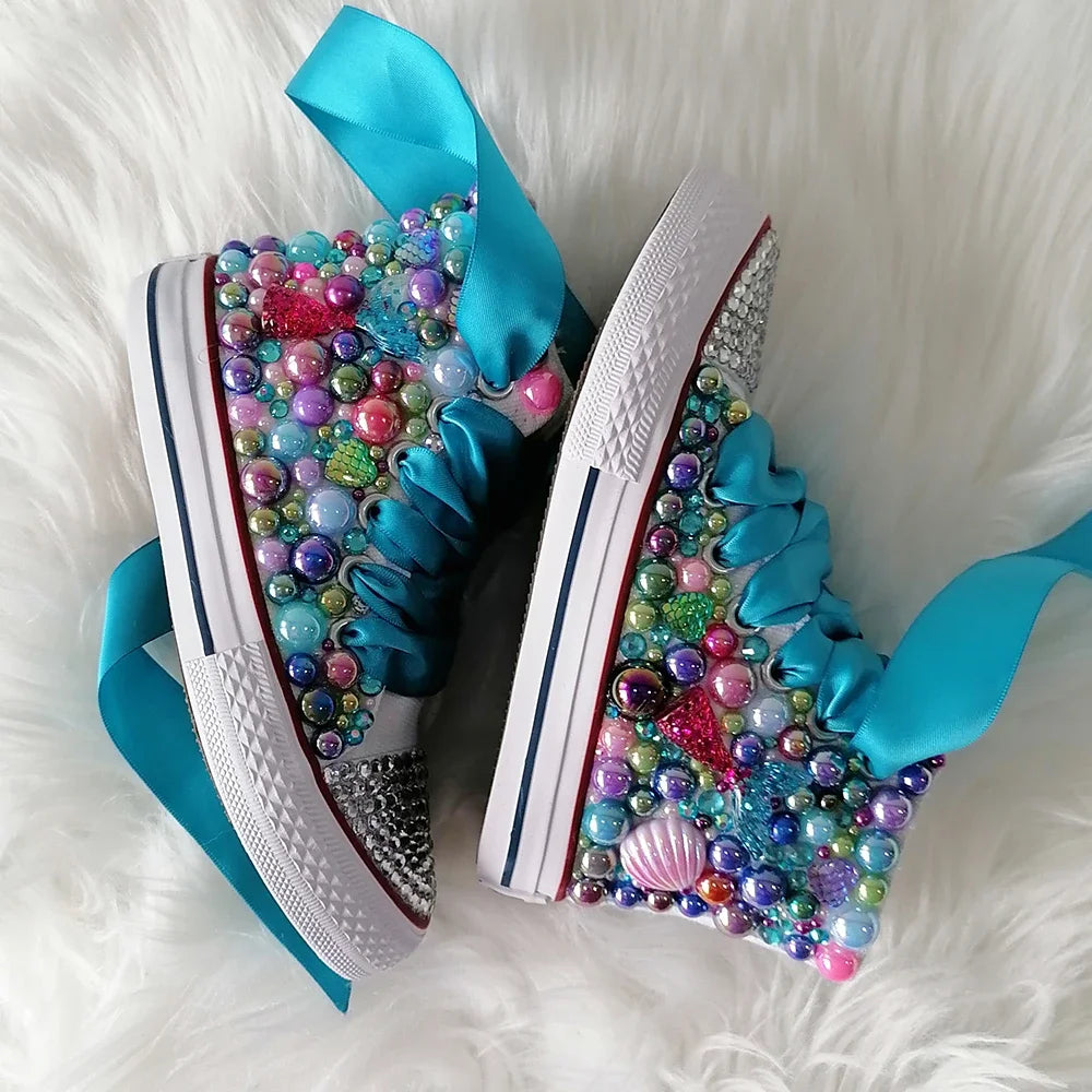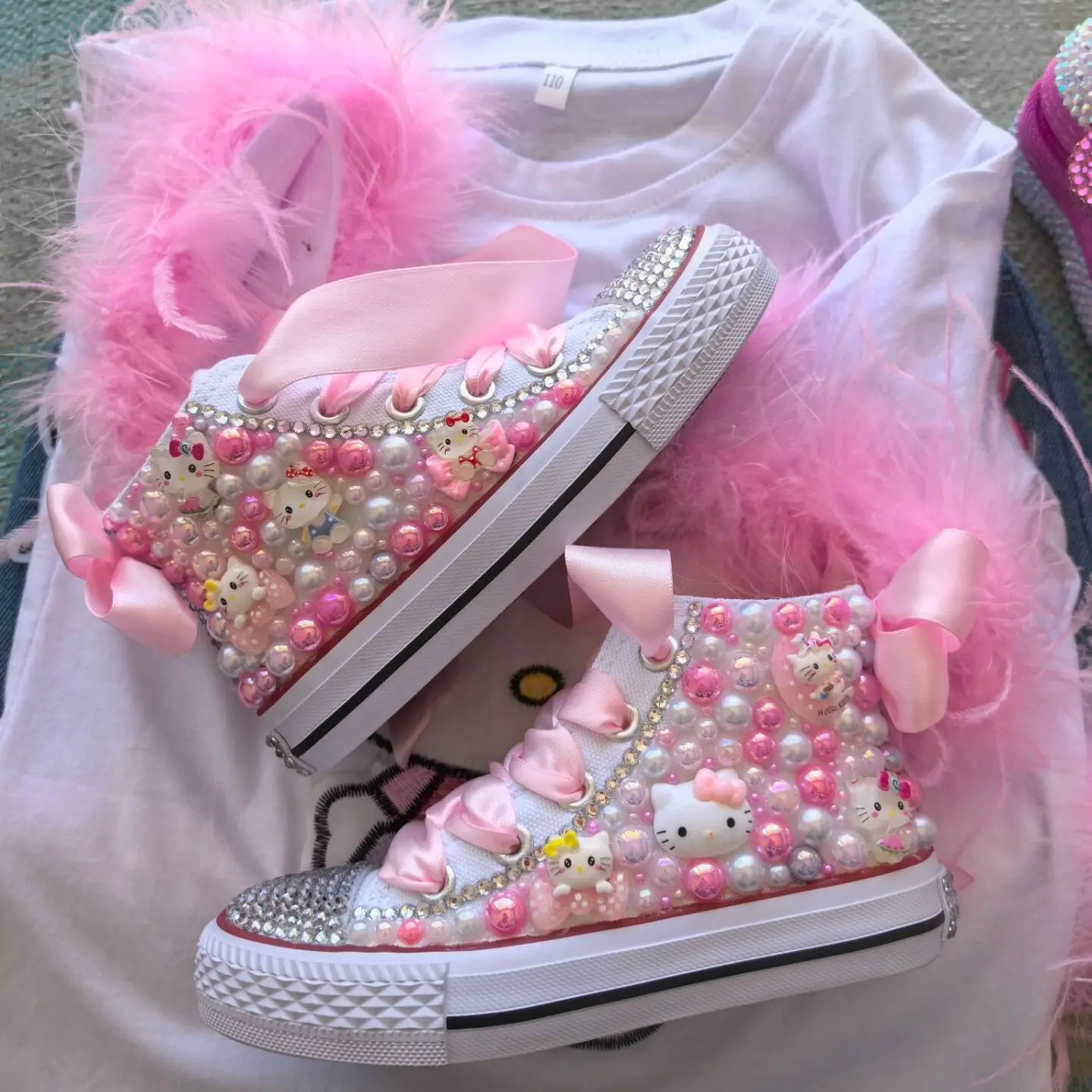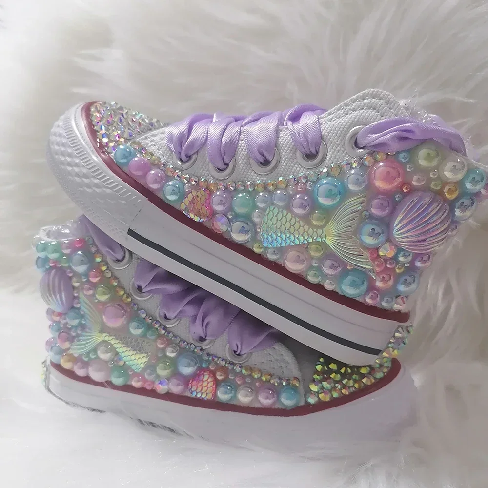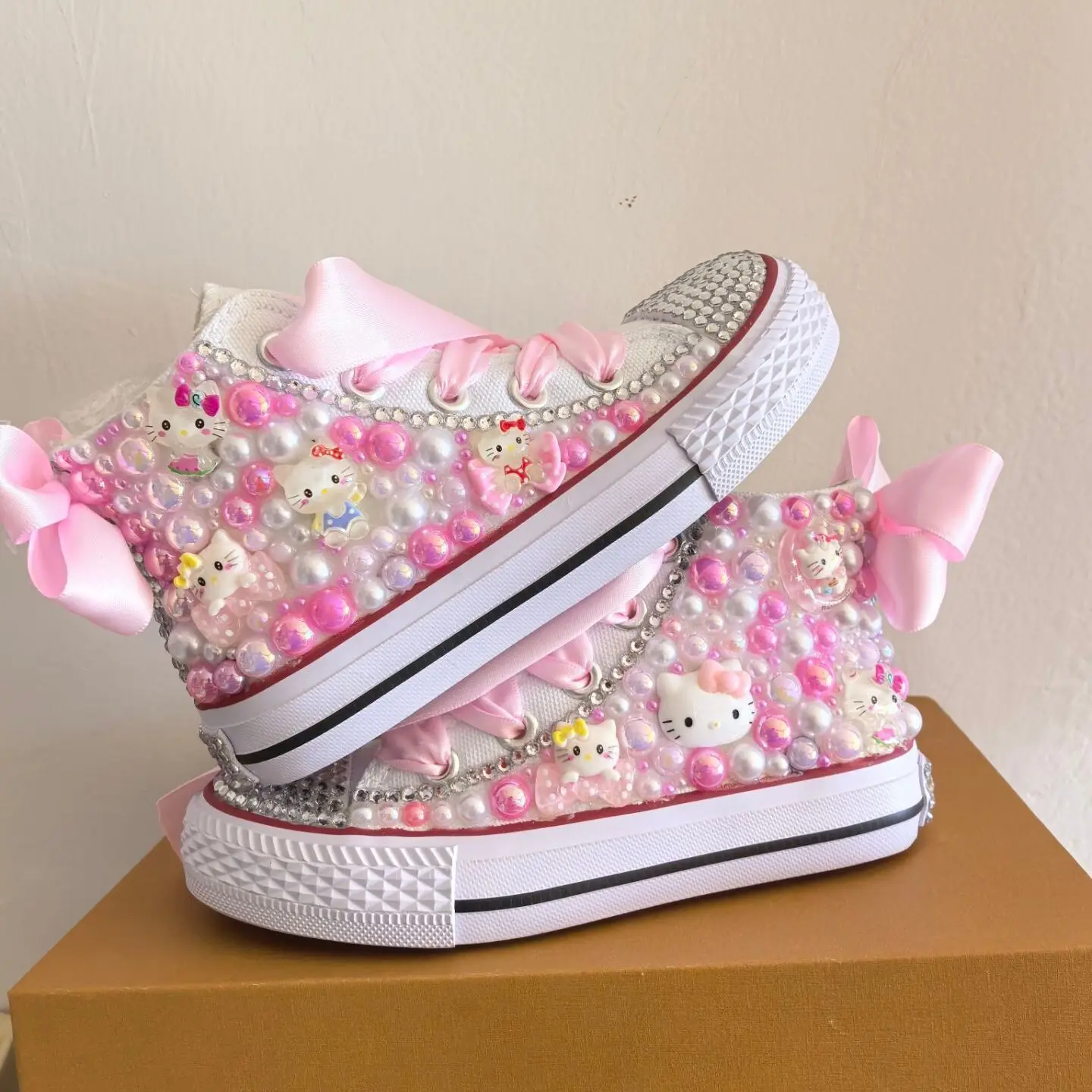 Handmade Rhinestones Bling Girls Womens Kids And Mother Candy Canvas Shoes Pearls Sneakers For Girl Birthday Party Wedding