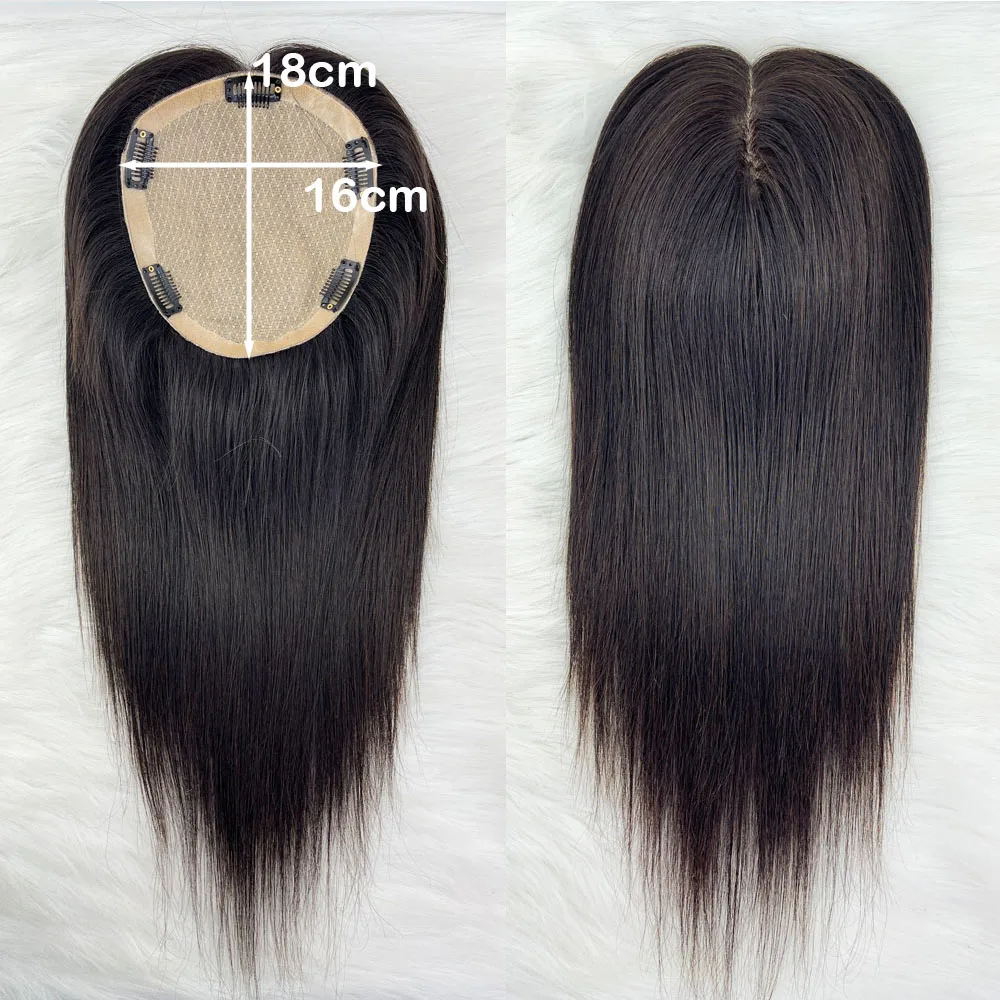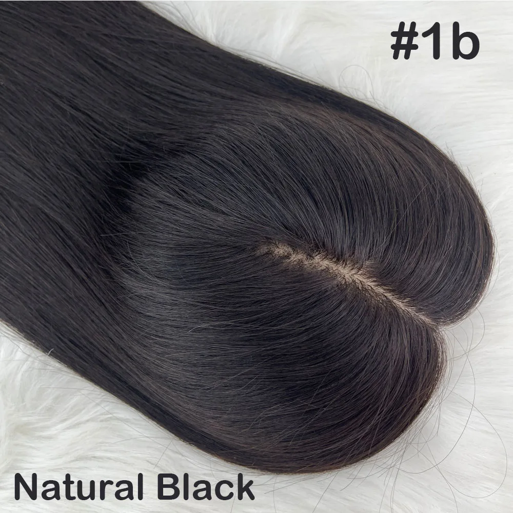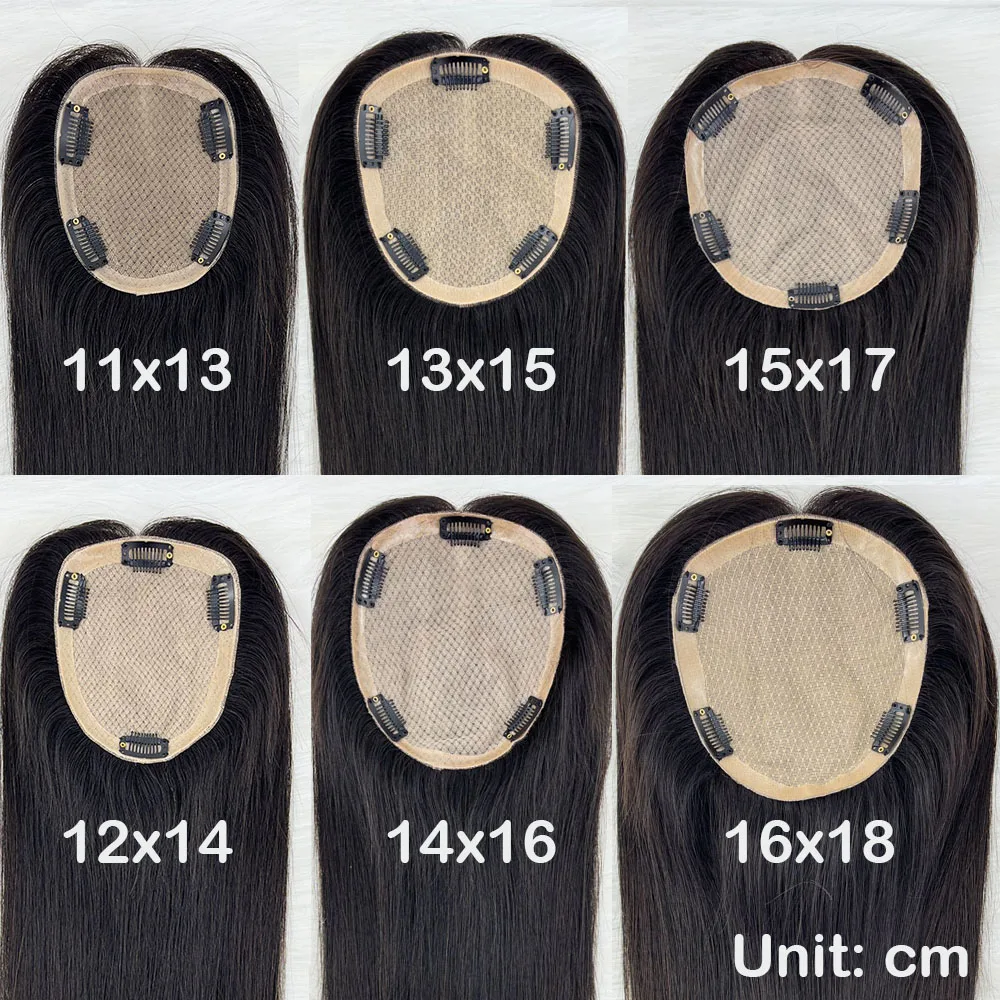 Human Hair Topper Silk Top Remy European Hair Straight Silk Base Full Hand tied Soft Breathable Hair Piece Clips for Women