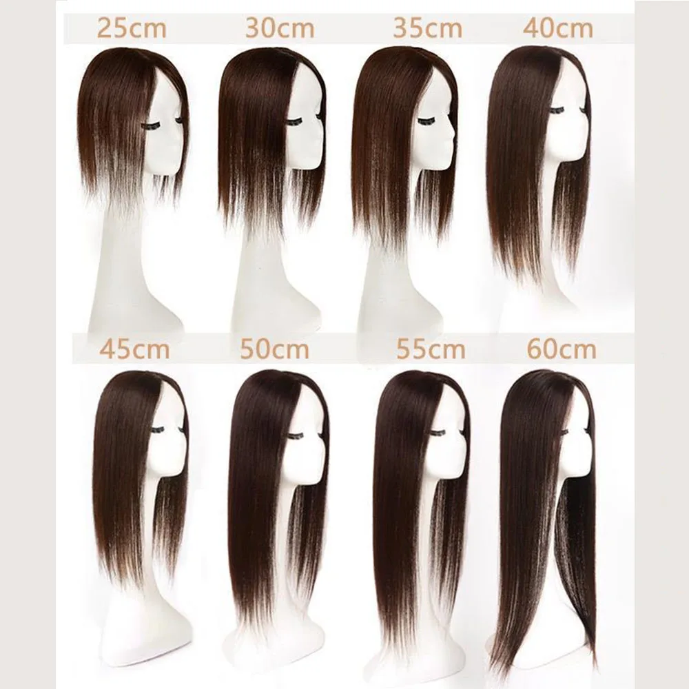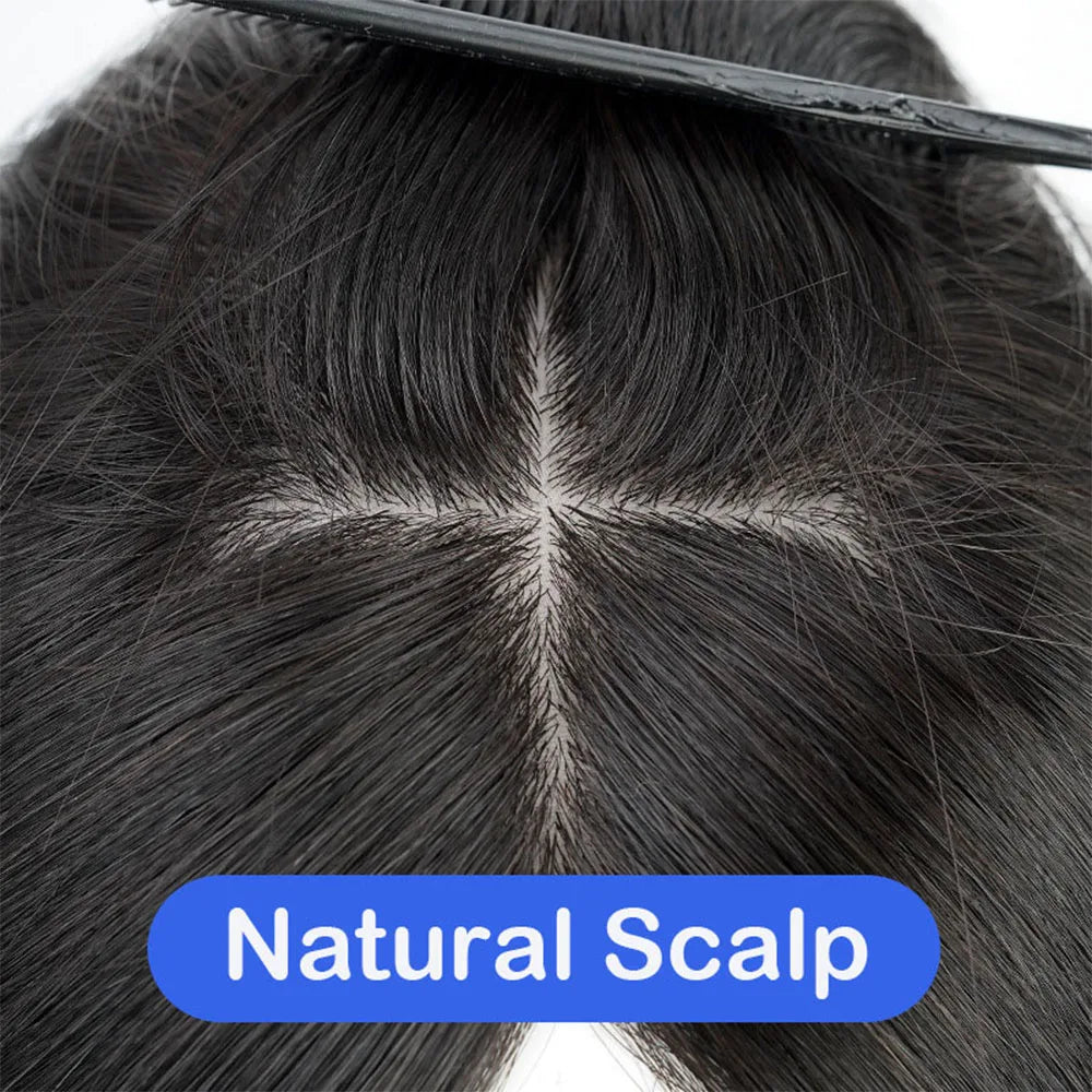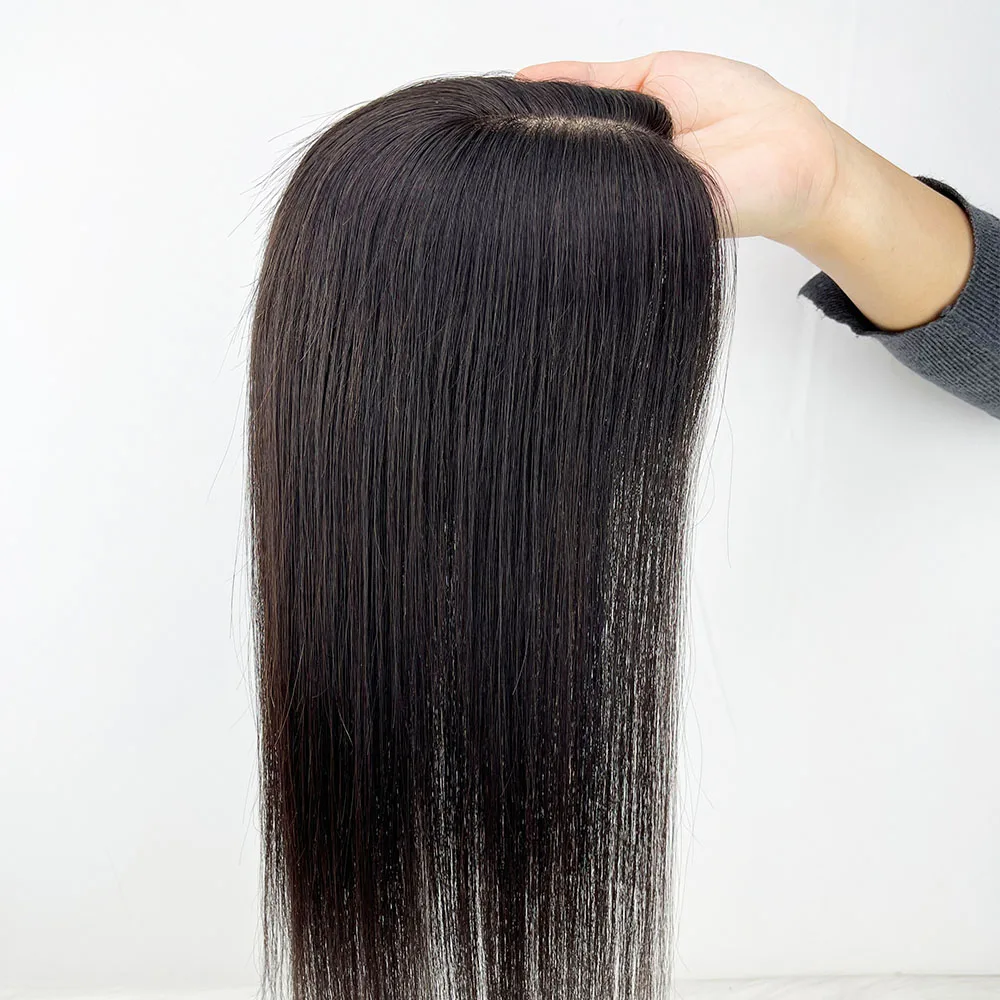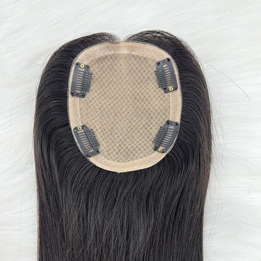 Human Hair Topper Silk Top Remy European Hair Straight Silk Base Full Hand tied Soft Breathable Hair Piece Clips for Women