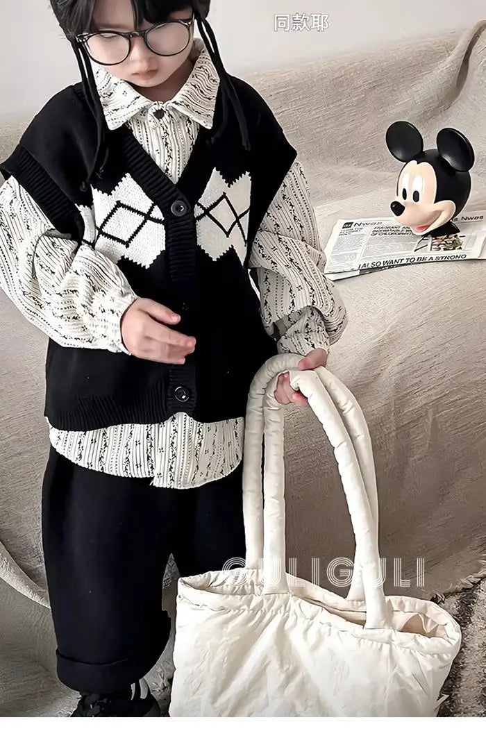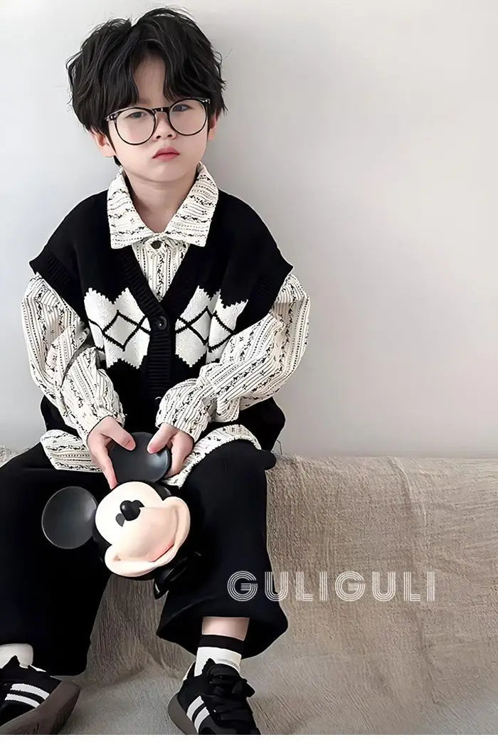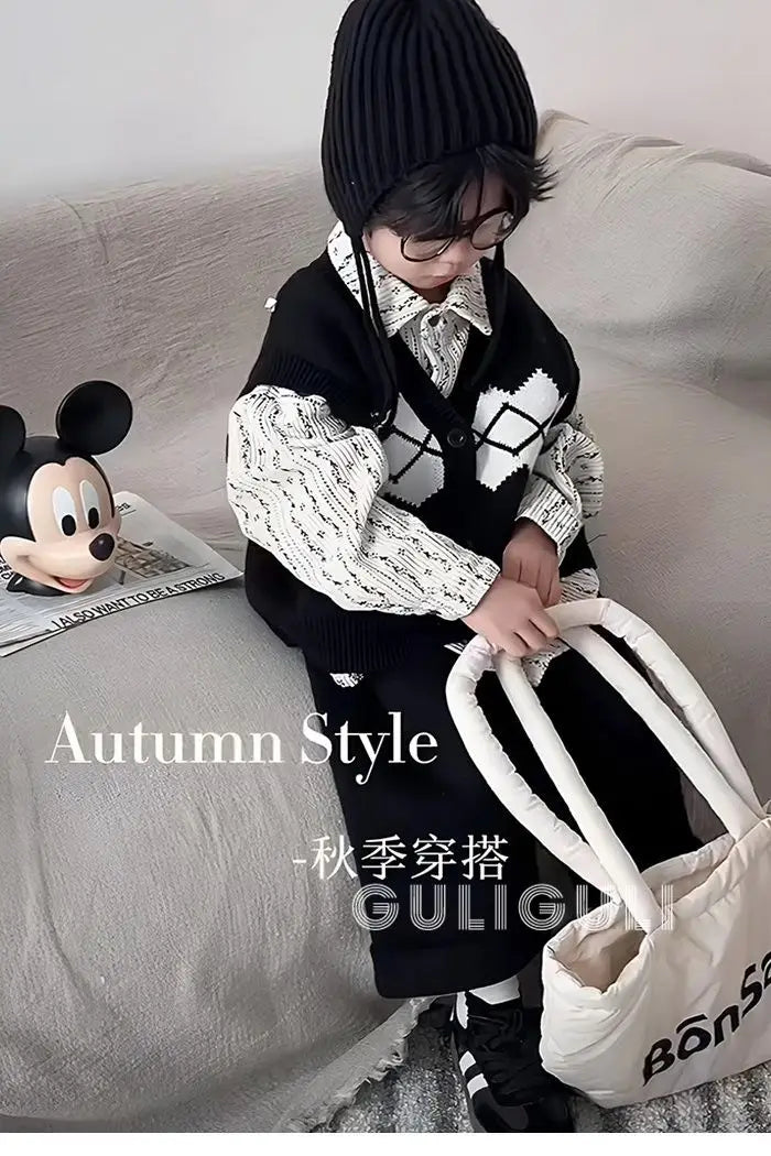 Kids Sets Vests Shirts Sweaters Long Pants New 2024 Autumn Fashion Korean Casual Simple Style Baggy Warm