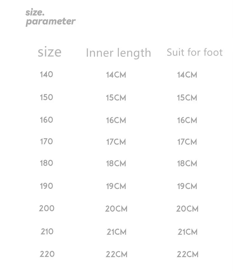 Shoes Length: 10cm,10.5cm,11cm,11.5cm,12cm,12.5cm,13cm,13.5cm,14cm,14.5cm,15cm,16cm,17cm,17.5cm,18cm,18.5cm,19cm,19.5cm,20cm,21cm,21.5cm,22cm