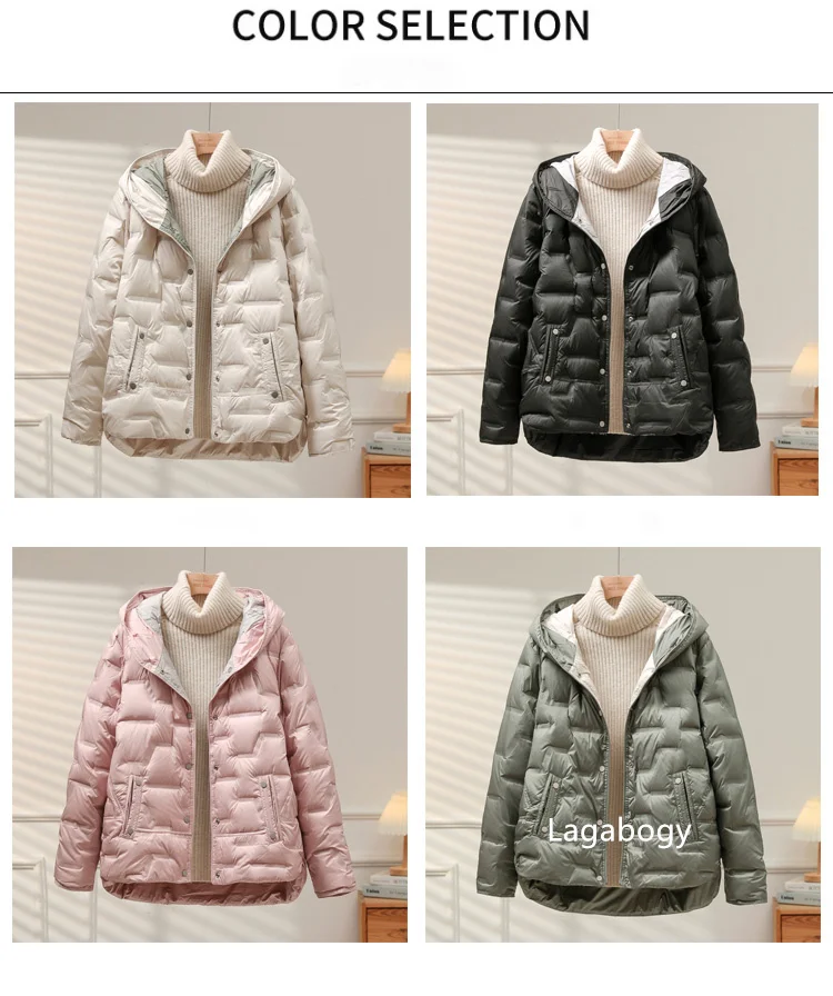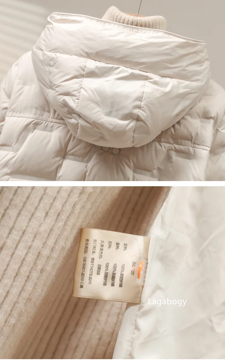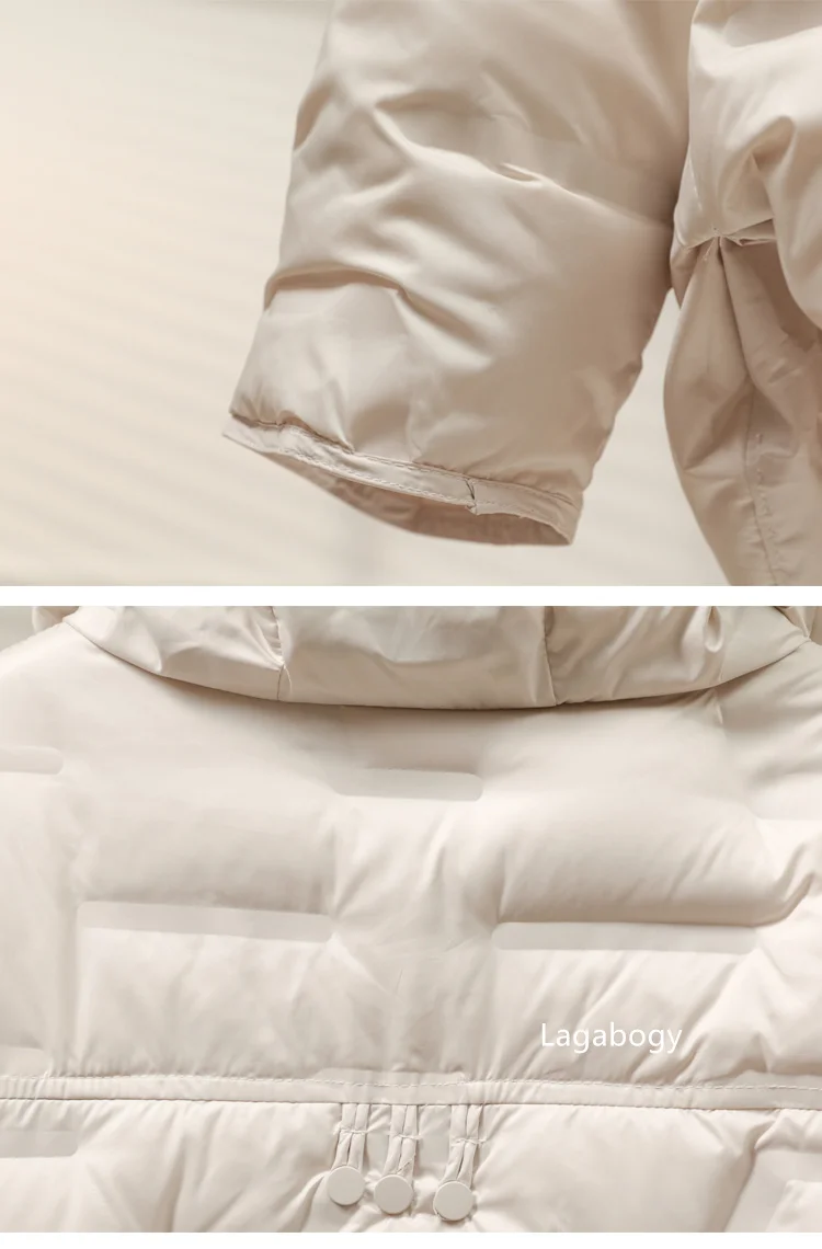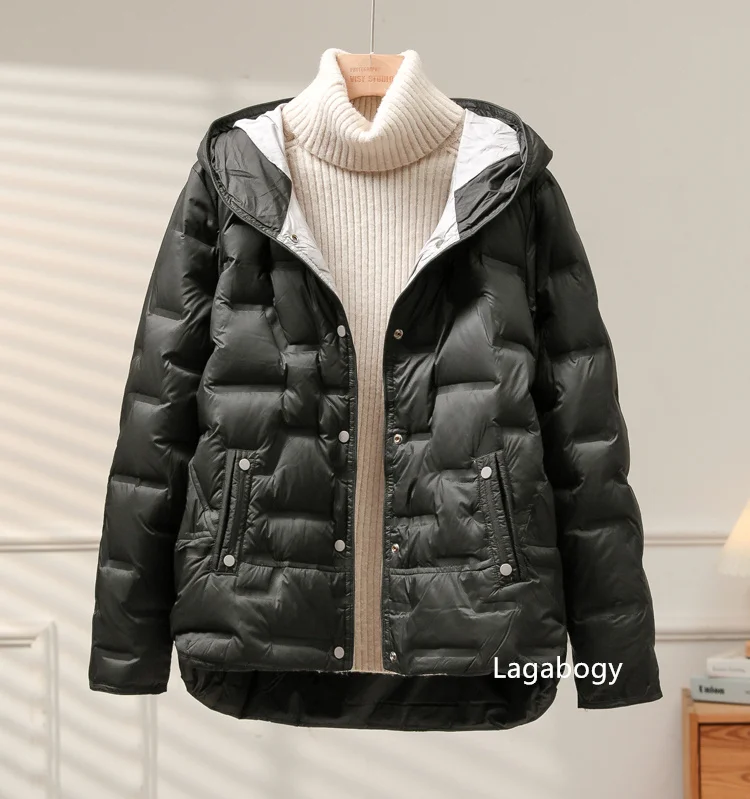 Lagabogy 2025 Autumn Winter Women White Duck Down Coat Casual Single Breasted Hooded Jacket Female Light Puffer Parka Outwear