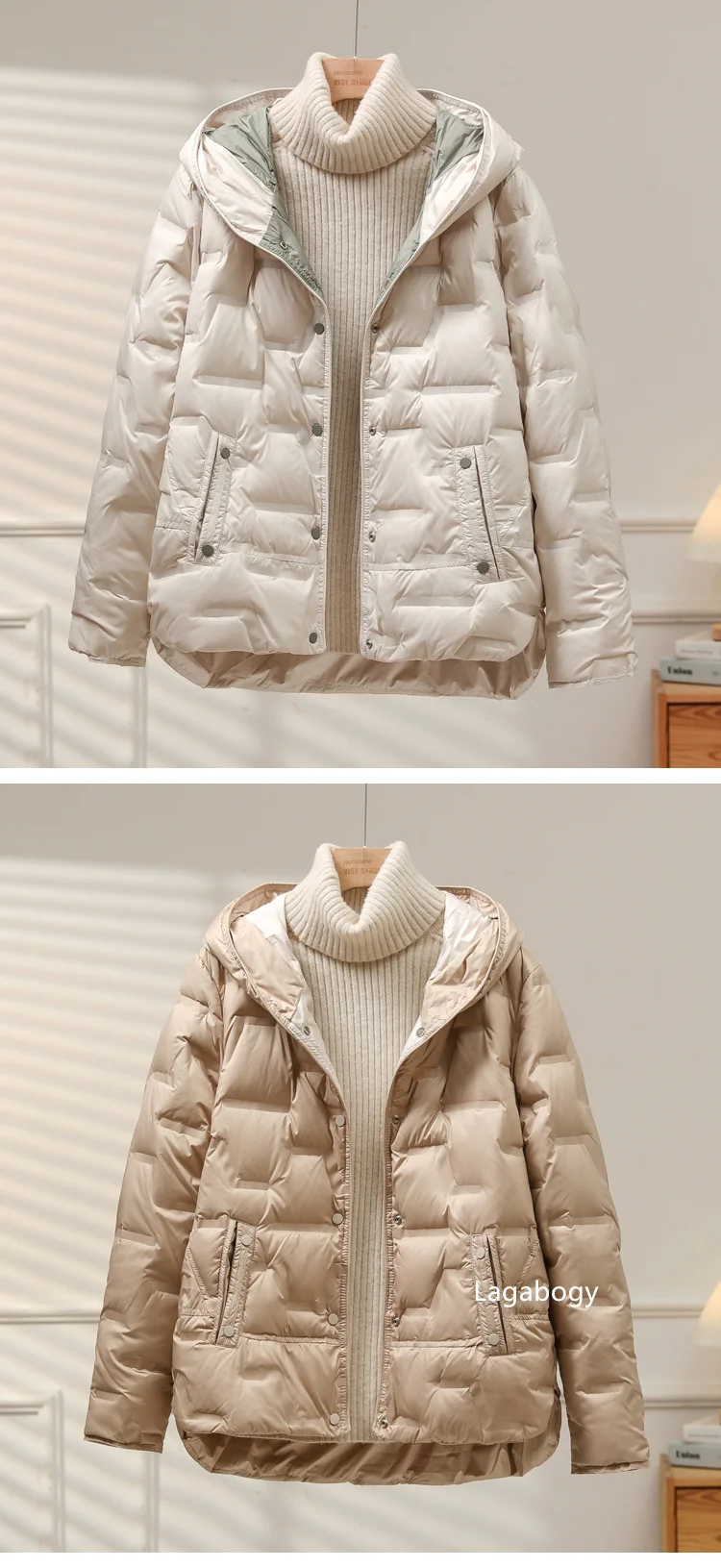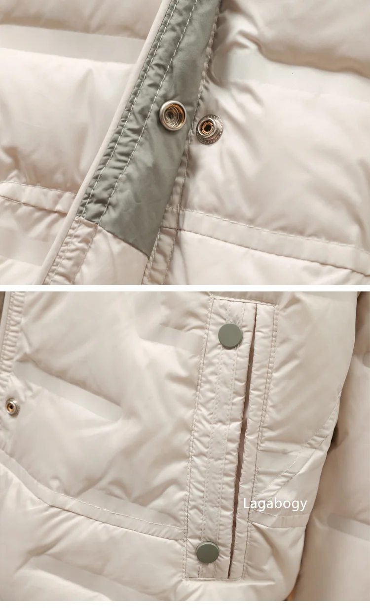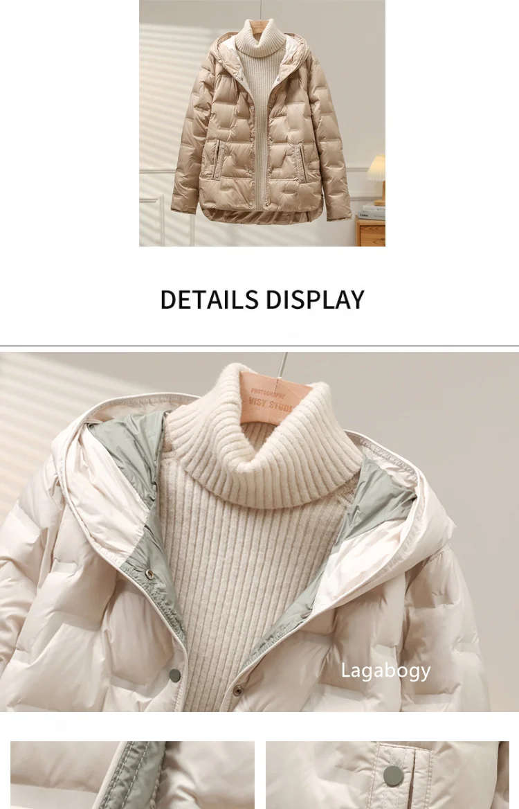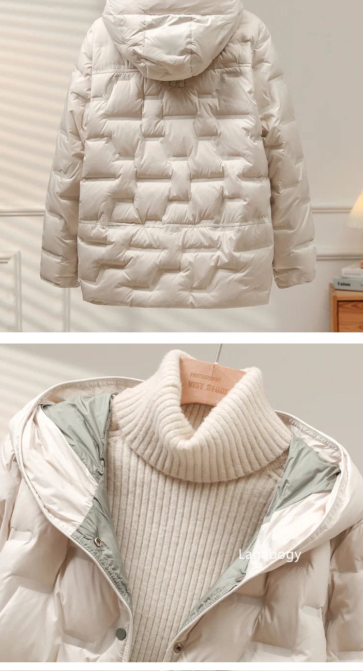 Lagabogy 2025 Autumn Winter Women White Duck Down Coat Casual Single Breasted Hooded Jacket Female Light Puffer Parka Outwear