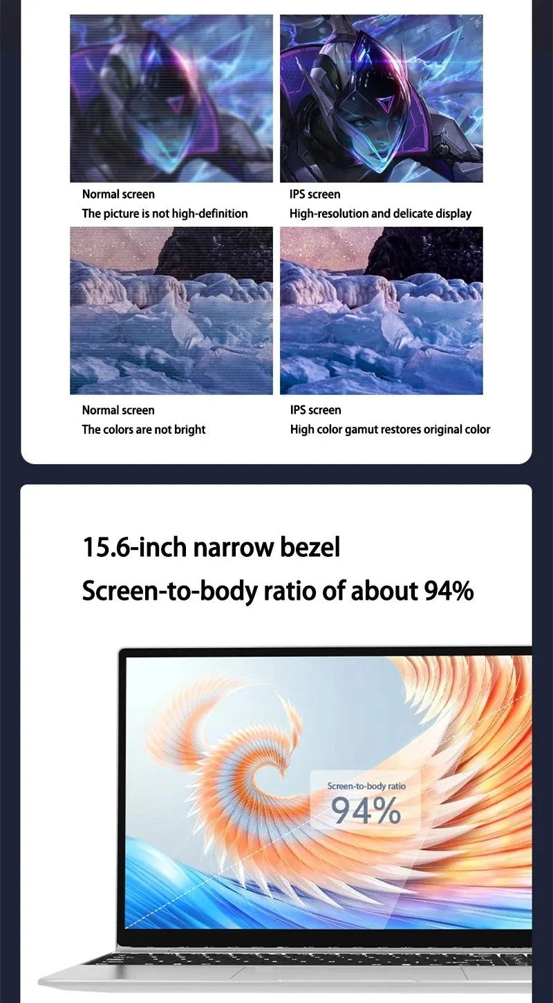 Laptop Computer 15.6 Inch CPU Intel N5095 16GB RAM 1TB WiFi6 Lightweight Business Computer Notebook Windows 11 Gaming laptops