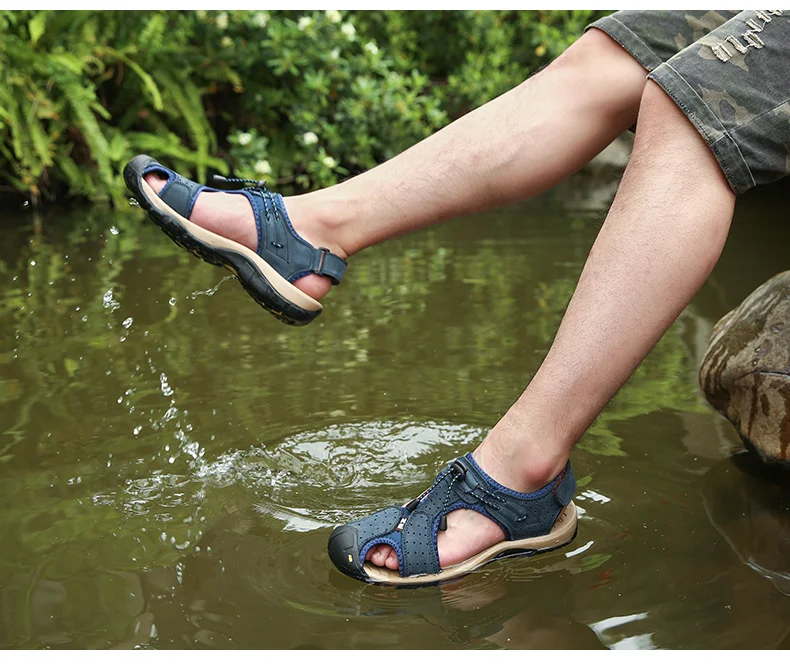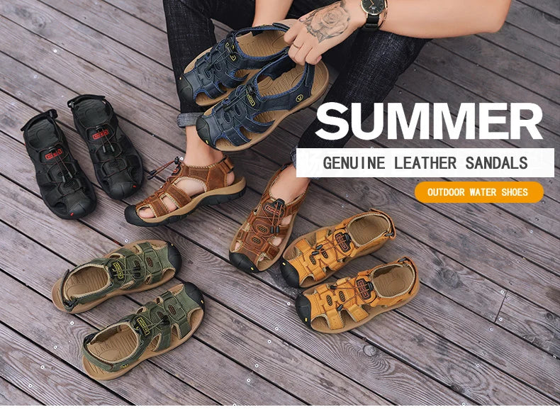 Leather Men Sandals Summer Shoes 2023 New Plus Size Mens Sandals Fashion Casual Outdoor Beach Slippers Breathable Wading Shoes