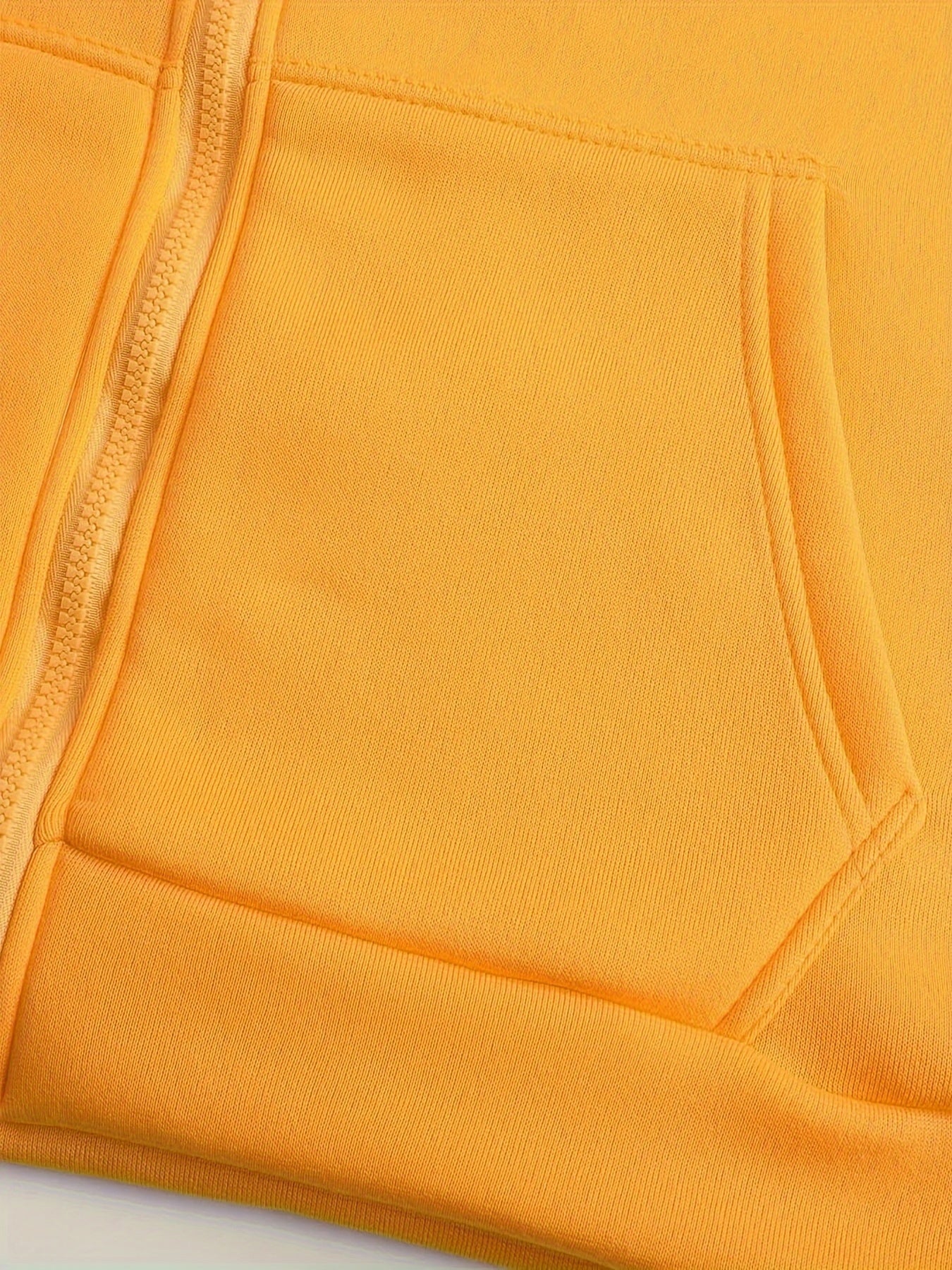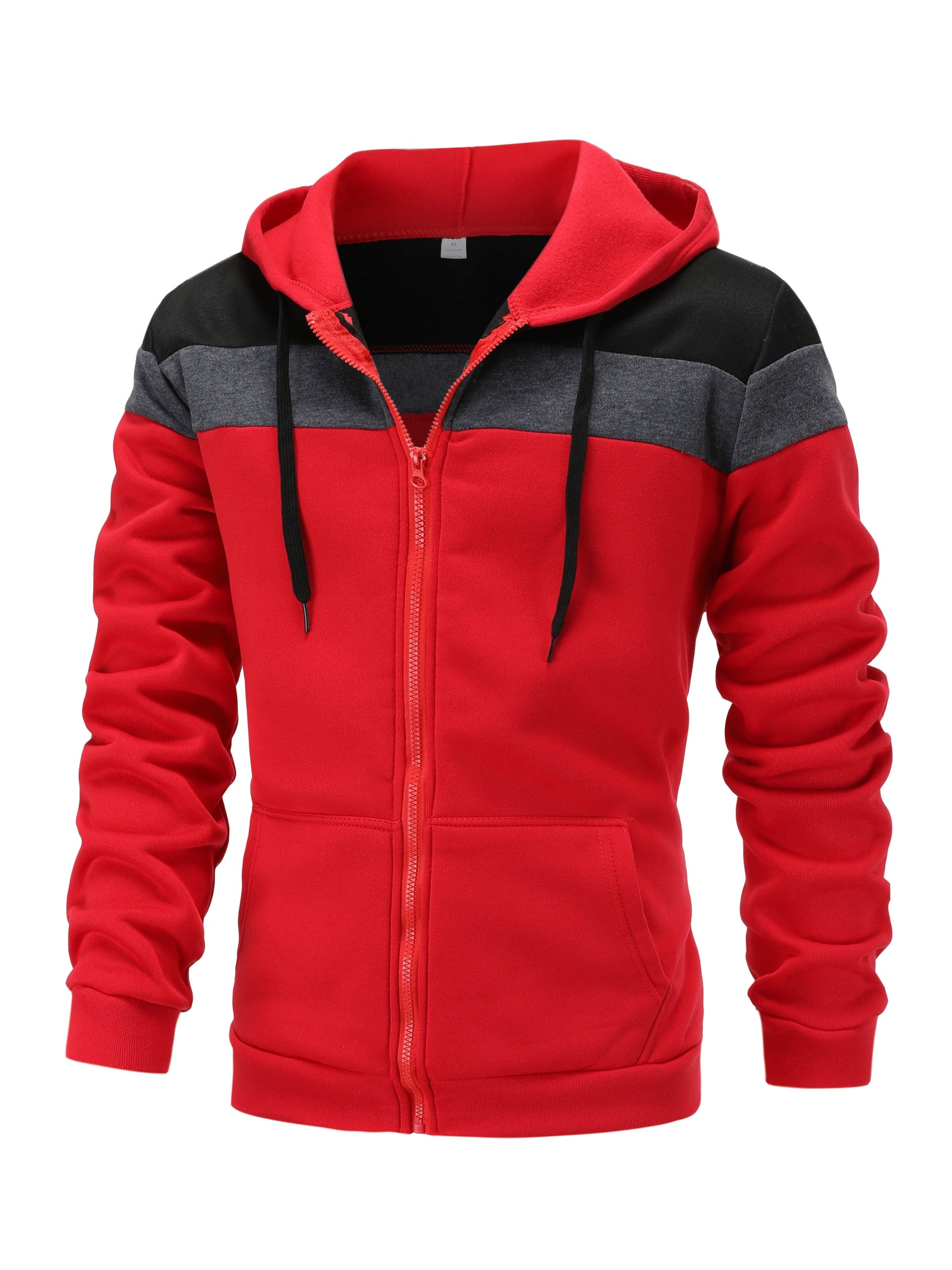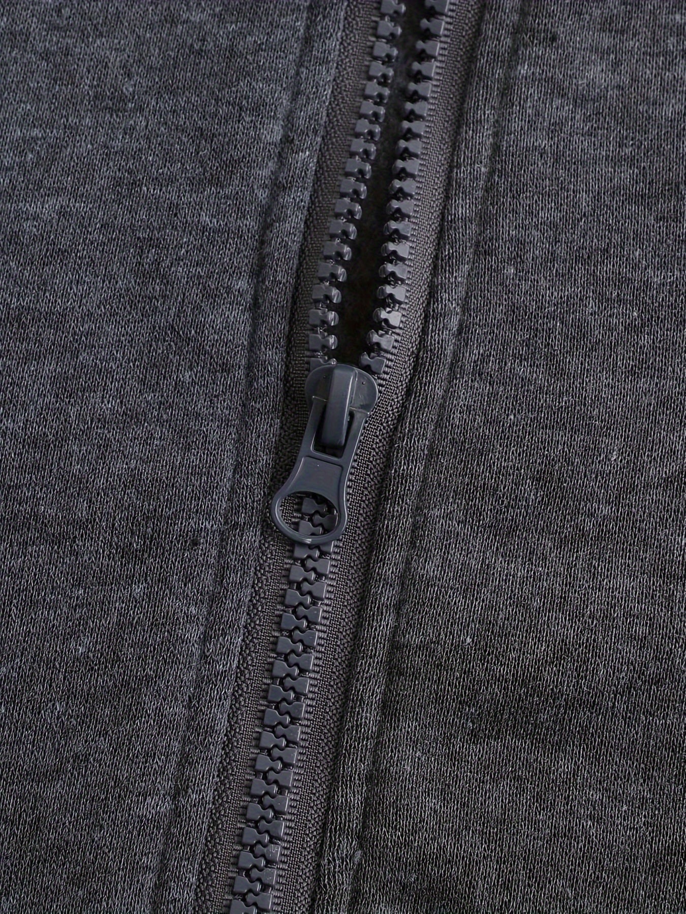Men'S Casual Hooded Sweatshirt, Solid Color Zip-Up Pullover, Long Sleeve Polyester Knit Fabric, Regular Fit with Slight Stretch, 160gsm - Autumn/Winter Fashion