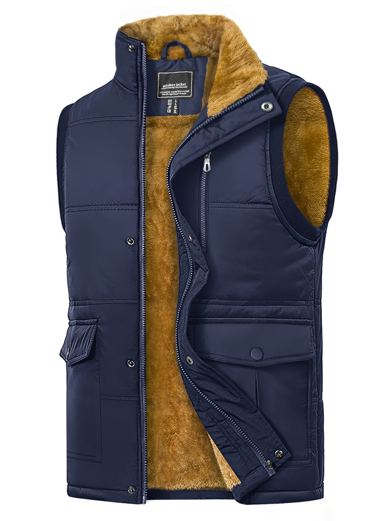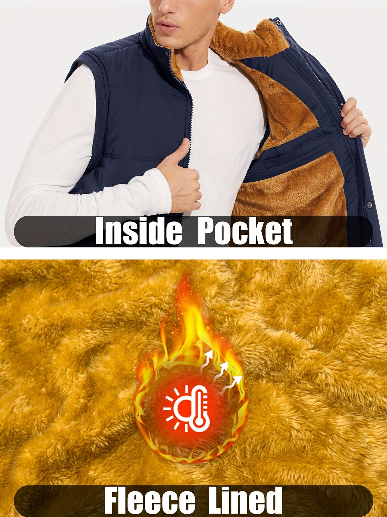 Men'S Windproof Vest with Fleece Lining - Soft, Warm, and, Multiple Pockets, Zippered Chest Pocket, Flap Button Side Pockets, One Inner Pocket, Windbreaker + Stand Collar Design for Outdoor Casual Wear, Winter Vest, H Stand C