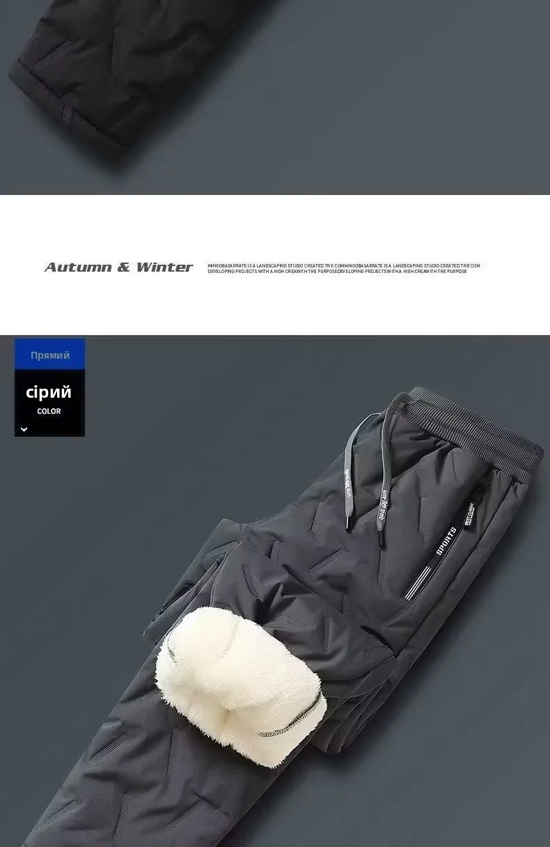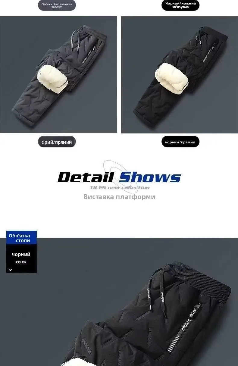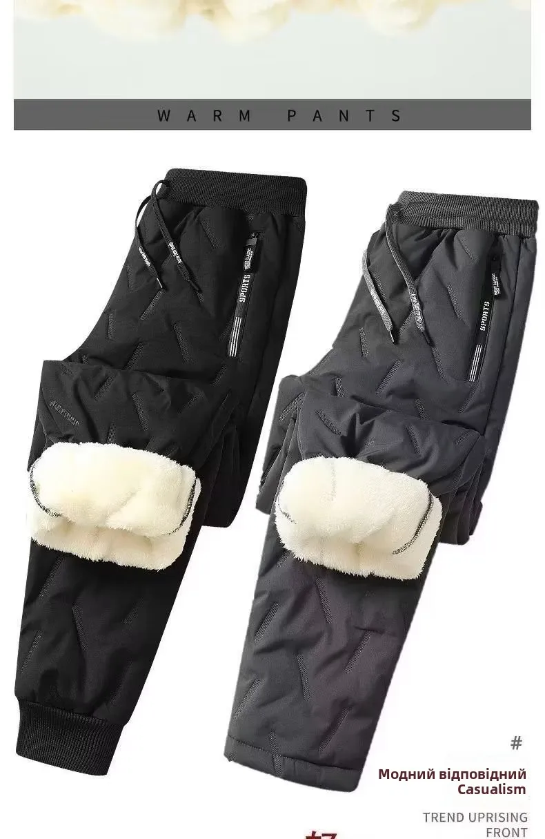 Men's Winter Thiened Fce Lined down Cotton Pants Casual Snowy Work Trousers Warm Lamb Velvet Long Pants Faion Urban Sle