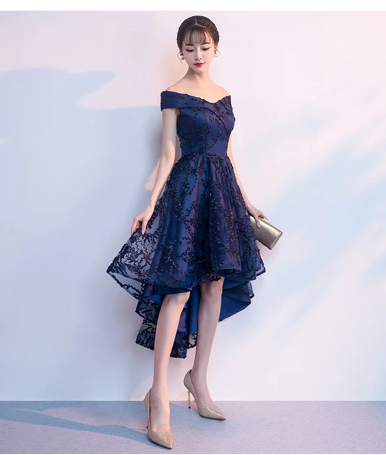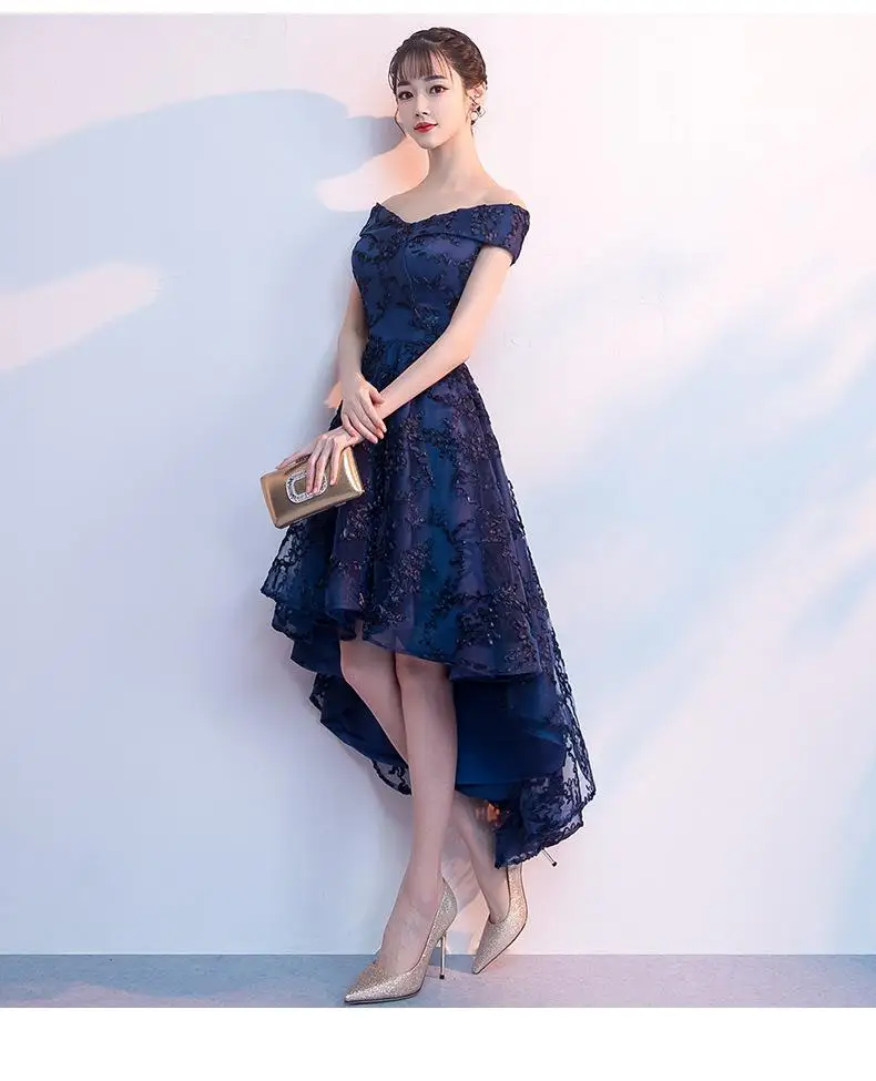 New Short Evening Dress Fashion Off The Shoulder Robe Soiree Short Front Long Back Prom Dresses Elegant Vestidos Customized