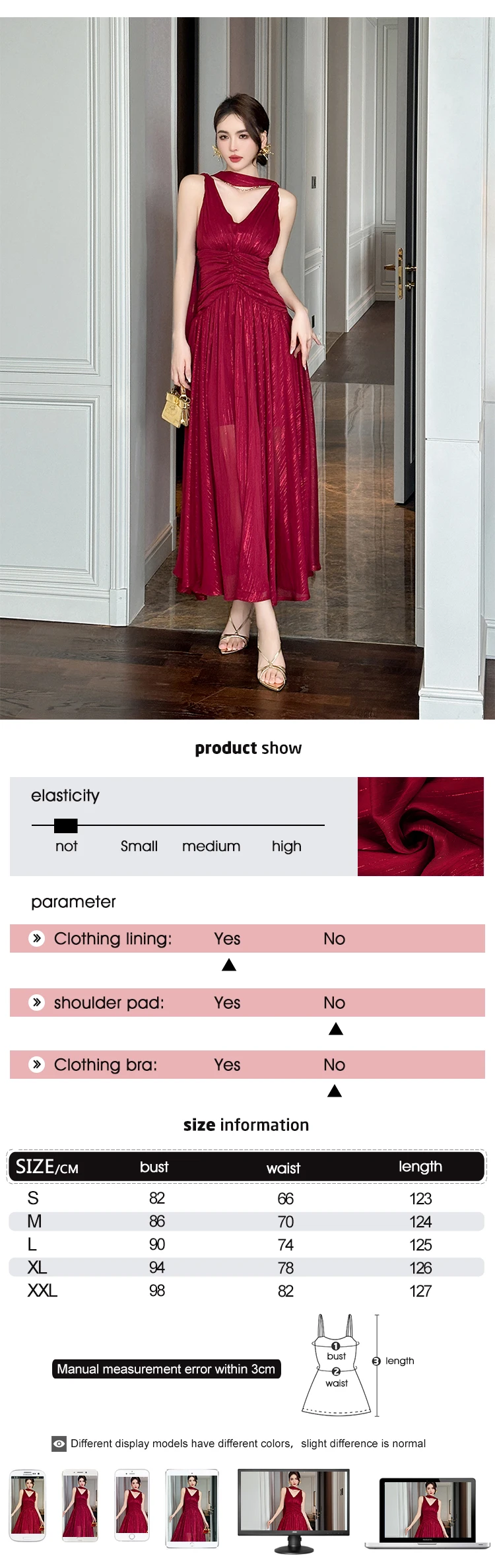 New Summer Chiffon Bright Silk Red Gown Evening Dress Women Clothes Elegant Sexy Tank V-Neck A-Line Maxi Robe Party Prom Vestido