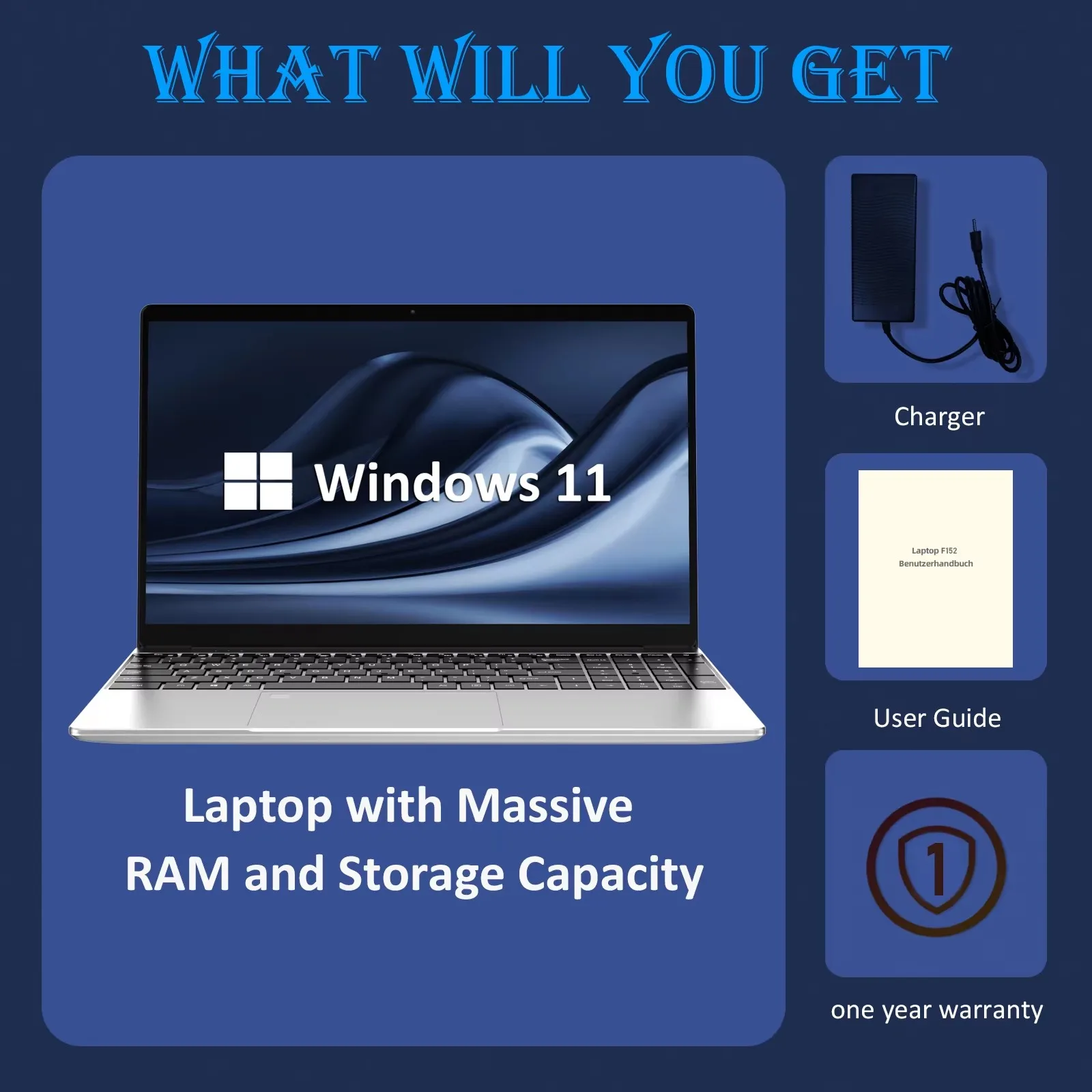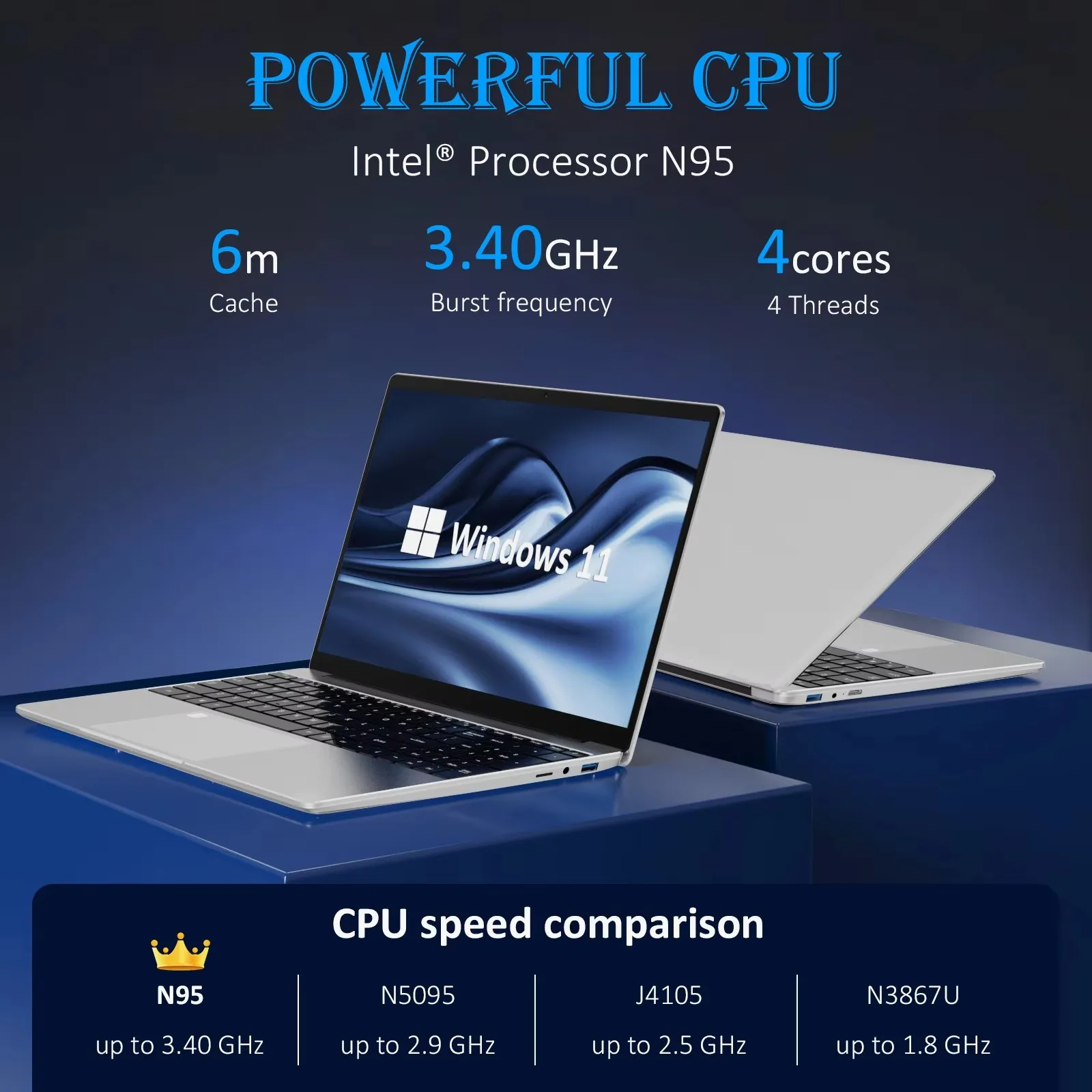 New Ultra Slim Laptop 15.6" Intel N95 32GB 2048GB 7500mAh Large Battery Windows 11 Pro Notebook Gamer Fingerprint Unlock