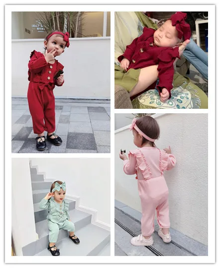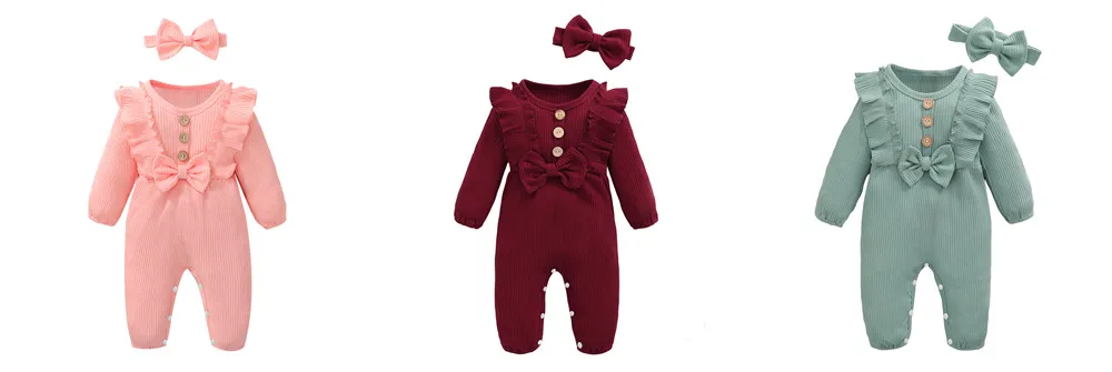 Newborn Baby Girl Romper Long Sleeved Ruffle Bodysuit with Headband Autumn & Winter Onesie Outfit Clothing for Baby 0-18 Months
