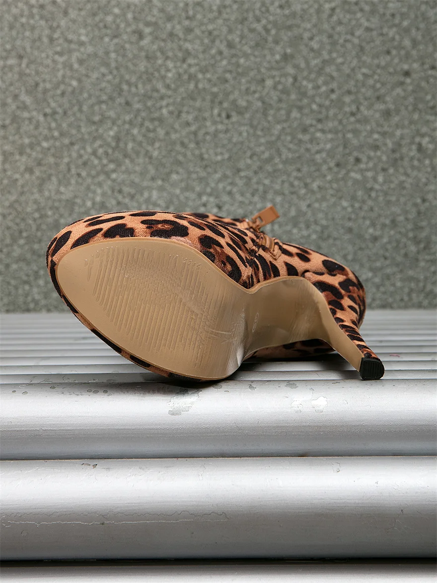 Plus Size 35-46 Sexy Leopard Pattern Women Ankle Boots Round Toe Zipper Super High Heels 2025 Autumn Female Platform Party Shoes
