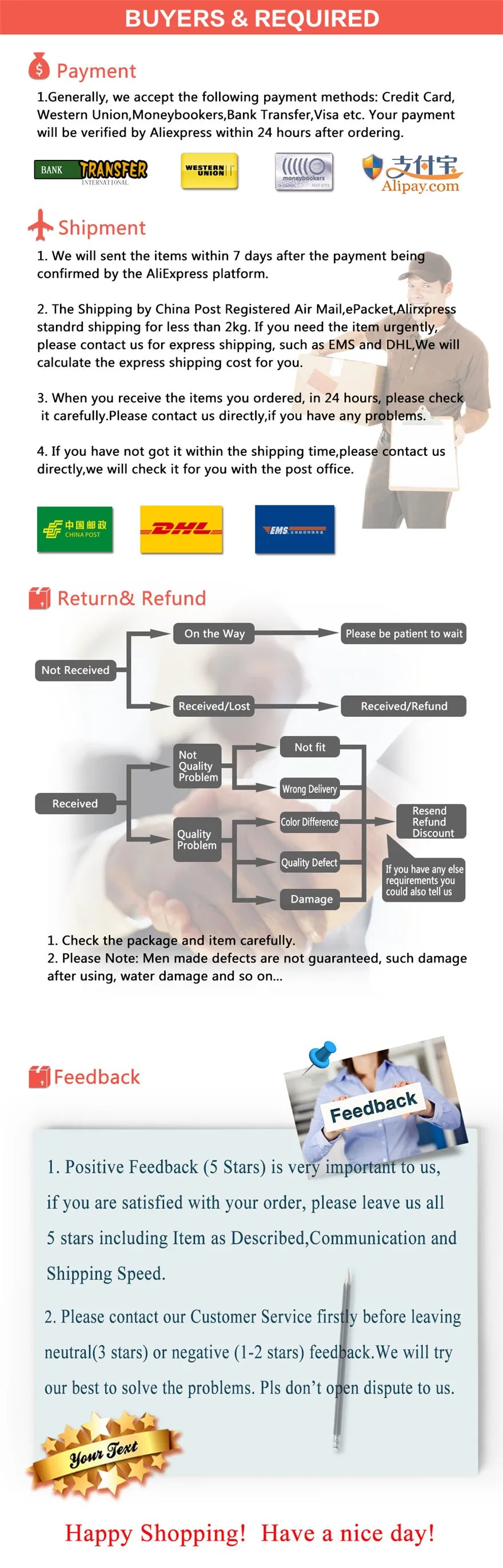 2. You can contact to us directly, if you have any size question.