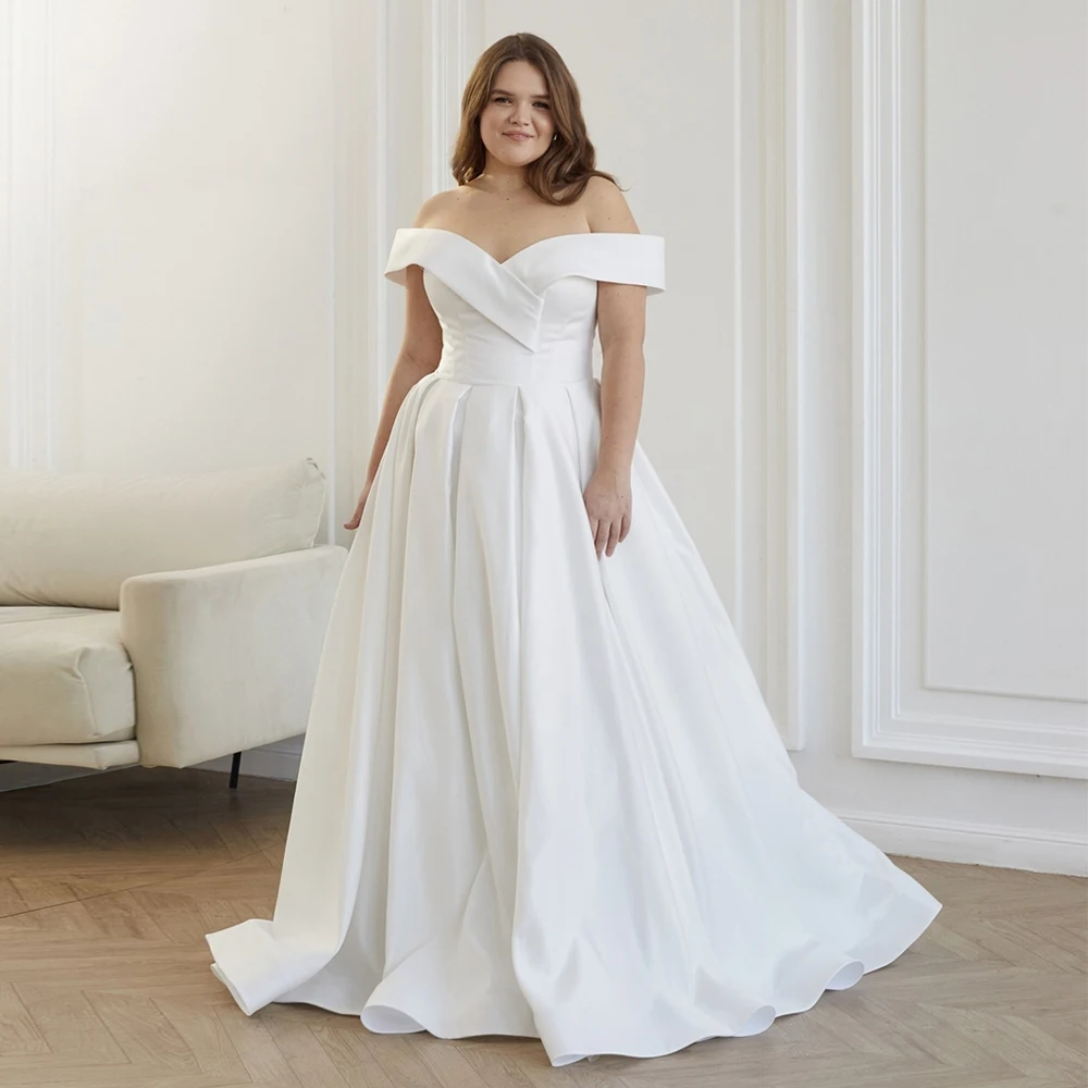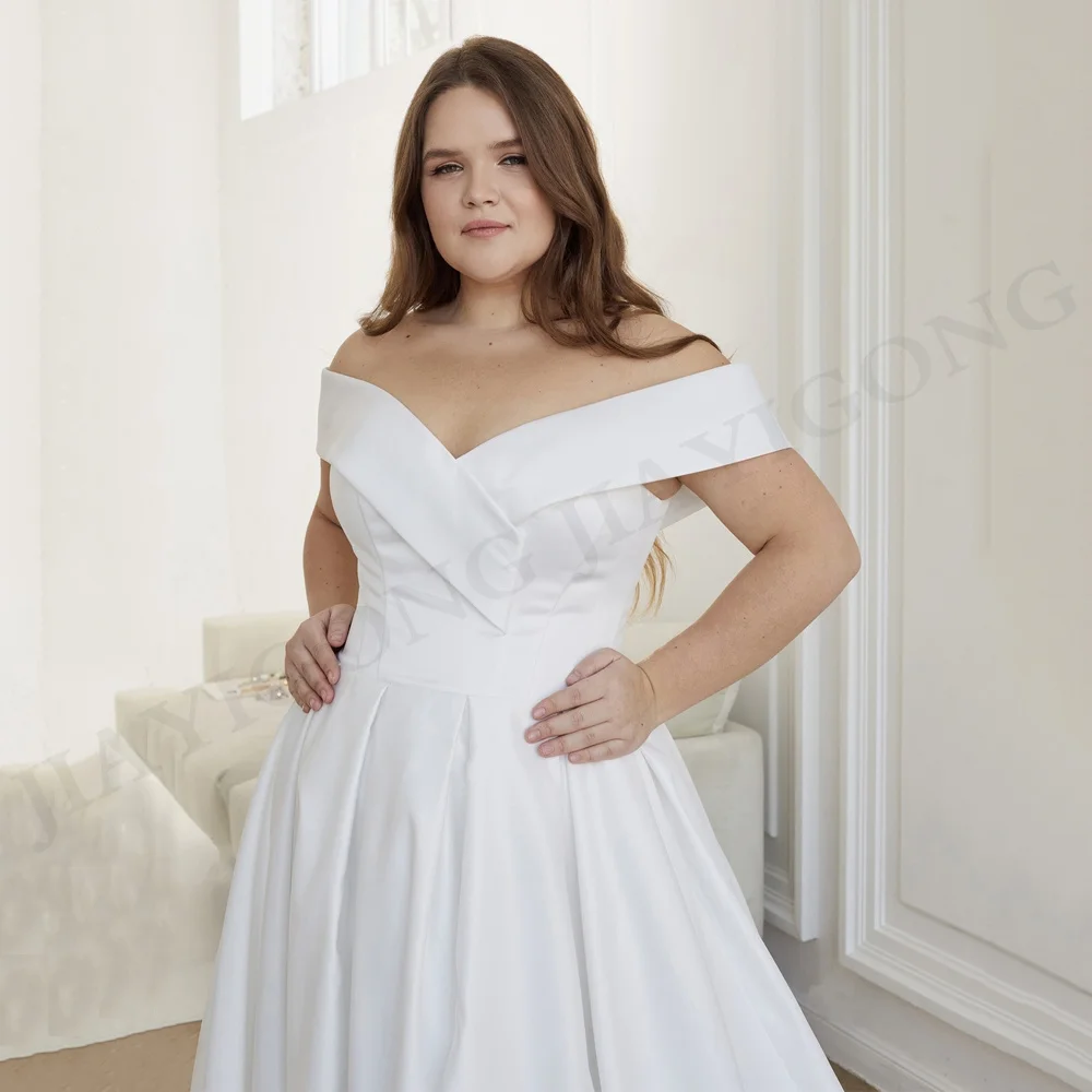 Plus Size Corset Wedding Dress Simple Off The Shoulder V Neck Draped A Line Vestido De Noiva Modern Satin Bride Bridal Gown
