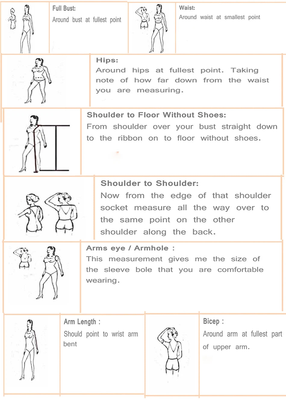As all of our dresses are hand-sewn and customer tailored, the finished gown may vary by approximately 1 inch in the specified measurements.