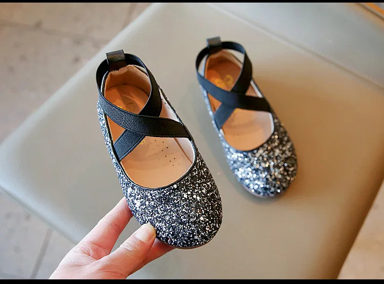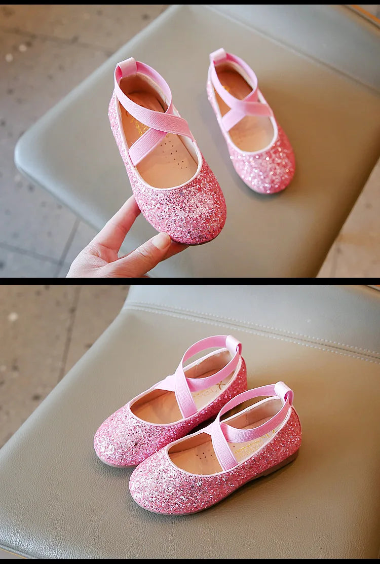 Princess Glitter Leather Girls Shoes Soft Comfortable Shiny Sequined Kids Shoes Sweet Wedding Dress Party Flats Mary Jane Shoes