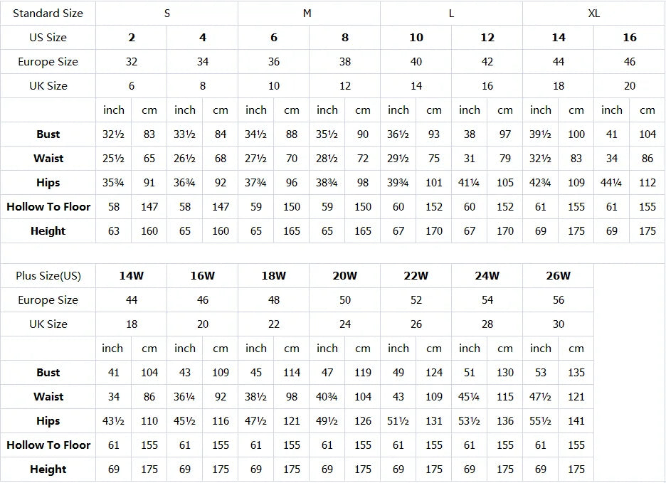 size_info: {"sizeInfoList":[{"length":{"cm":"83","inch":"32.68"},"size":"2","vid":-2},{"length":{"cm":"84","inch":"33.07"},"size":"4","vid":-7},{"length":{"cm":"88","inch":"34.65"},"size":"6","vid":-8},{"length":{"cm":"90","inch":"35.43"},"size":"8","vid":-9},{"length":{"cm":"93","inch":"36.61"},"size":"10","vid":-10},{"length":{"cm":"97","inch":"38.19"},"size":"12","vid":-11},{"length":{"cm":"100","inch":"39.37"},"size":"14","vid":-12},{"length":{"cm":"104","inch":"40.94"},"size":"16","vid":-13},{"length":{"cm":"104","inch":"40.94"},"size":"14w","vid":-14},{"length":{"cm":"109","inch":"42.91"},"size":"16w","vid":-15},{"length":{"cm":"114","inch":"44.88"},"size":"18w","vid":-16},{"length":{"cm":"119","inch":"46.85"},"size":"20w","vid":-17},{"length":{"cm":"124","inch":"48.82"},"size":"22w","vid":-18},{"length":{"cm":"130","inch":"51.18"},"size":"24w","vid":-19},{"length":{"cm":"135","inch":"53.15"},"size":"26w","vid":-20},{"length":{"cm":"0","inch":"0.00"},"size":"定制尺码","vid":-21}]}