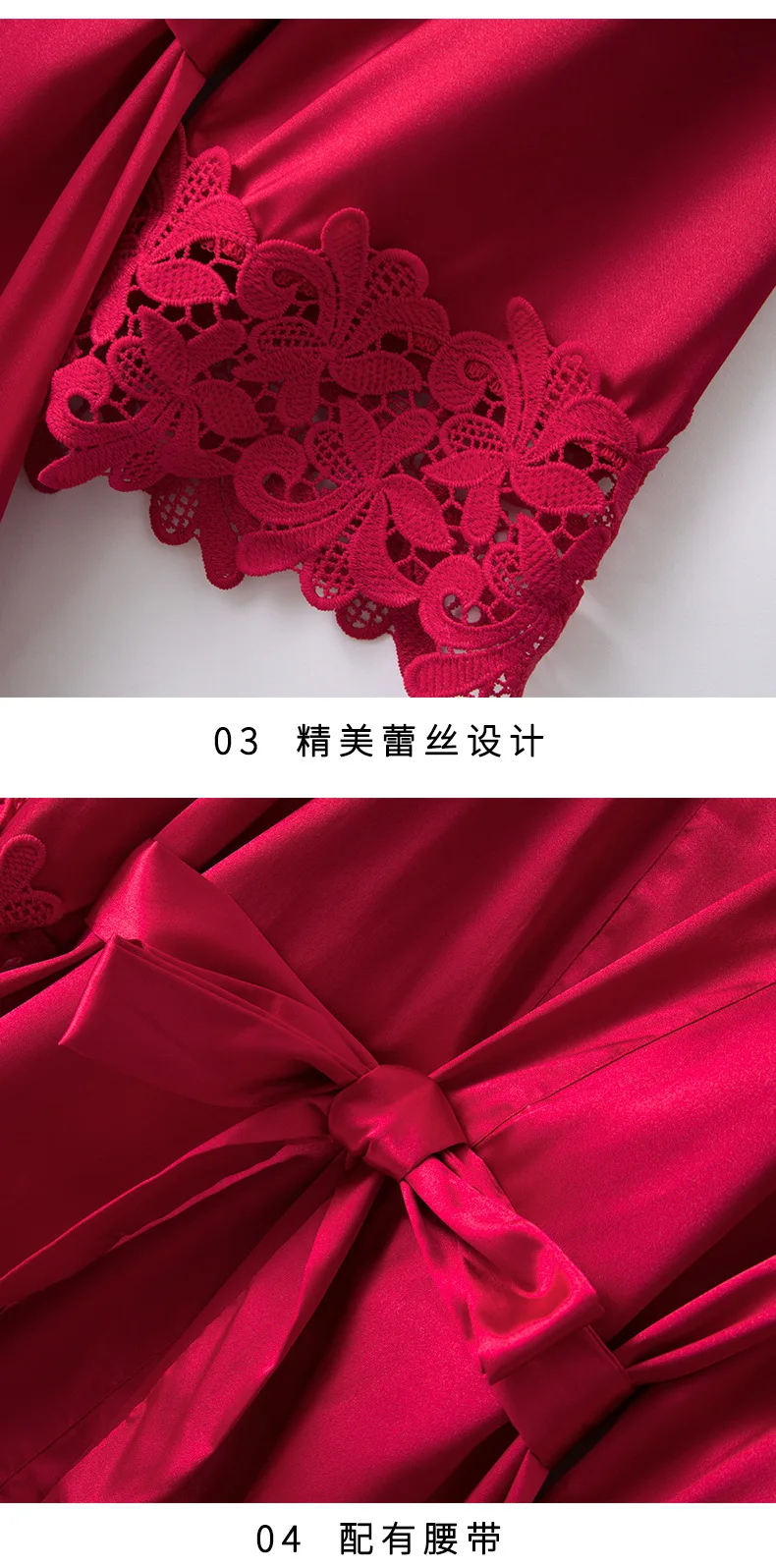 Sexy Bride Wedding Robe Home Dress Elegant Lace Embroidery Bride Negligee Kimono Gown Loose Silk Satin Sleepwear Nightgown