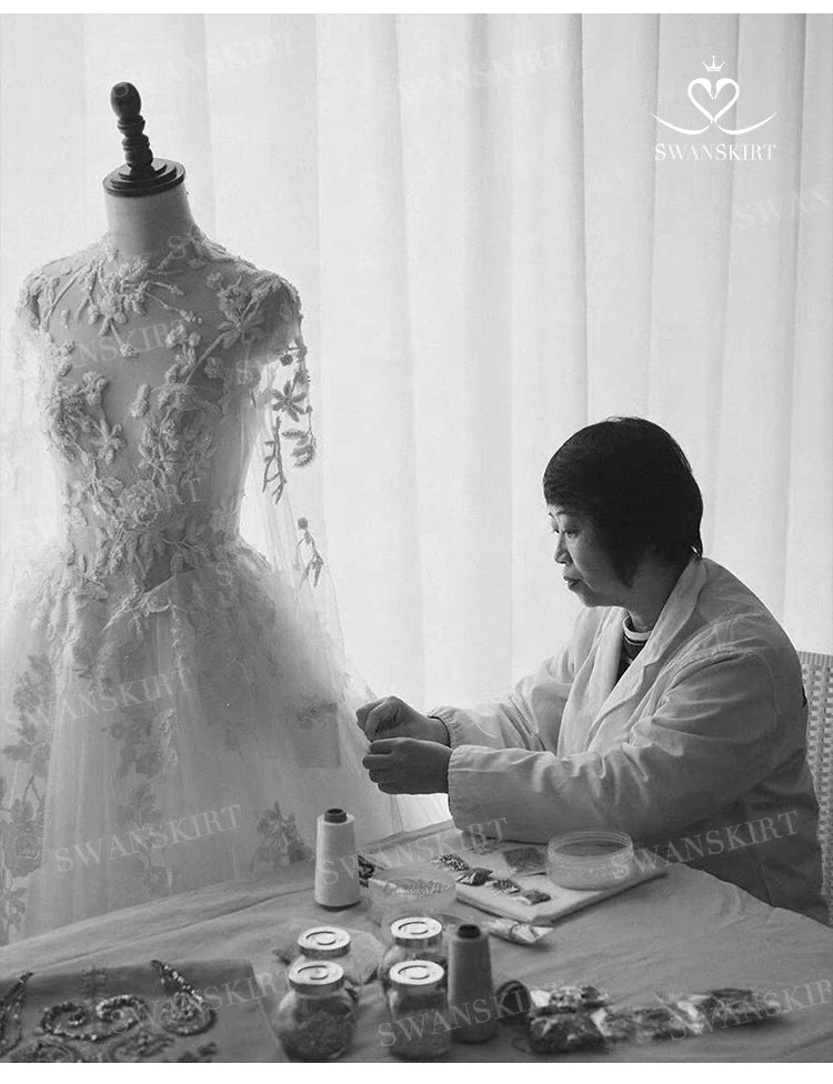 Embroidering a wedding dress takes great skill and an eye for detailed designs.