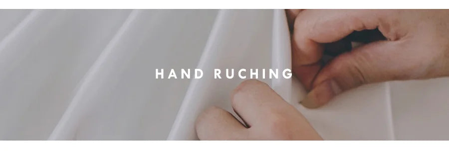 Our tailors do ruching by hand to create the perfect shape and fullness on each dress.