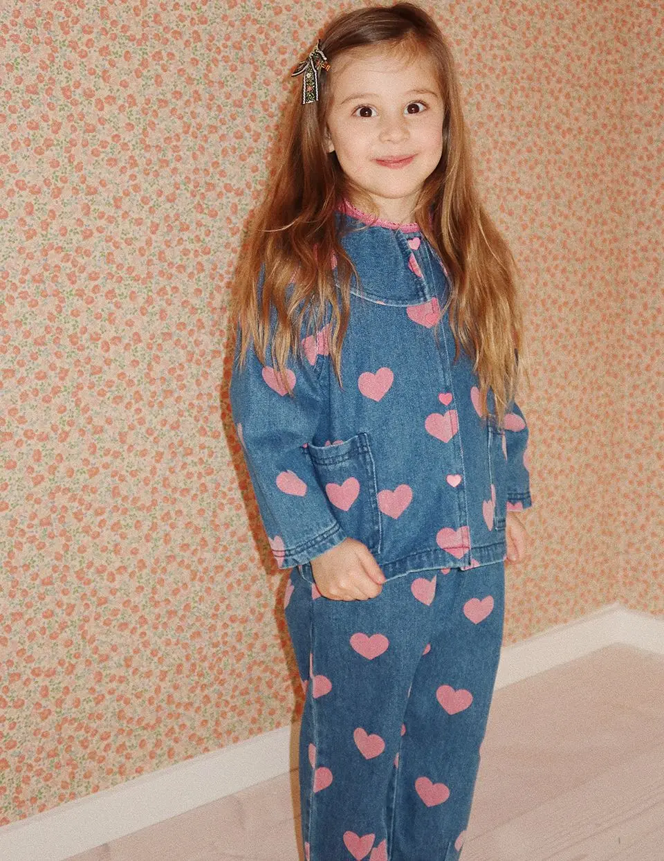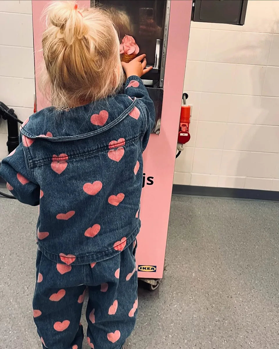 Spot 24 autumn/winter children's denim jacket pants set girls' denim overalls white shirt