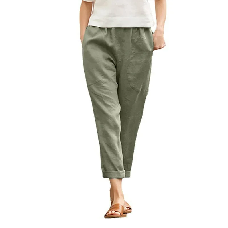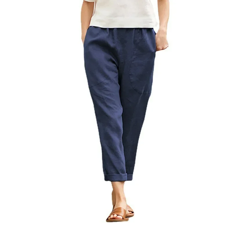 Spring Autumn Ladies Casual Cotton Linen Loose Slim Straight Leg Harem Pants Large Size Nine Points Seven Points Five Points