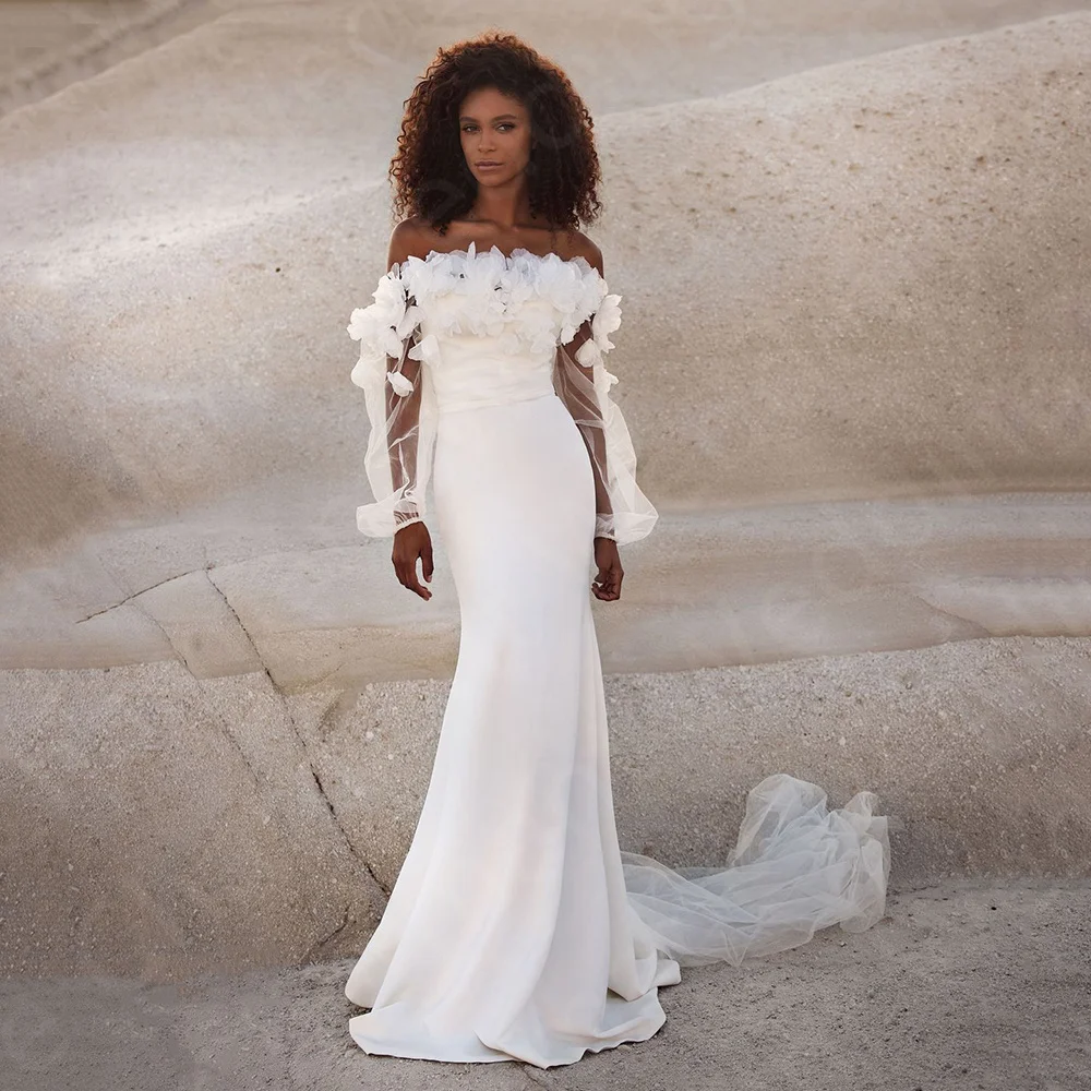 Summer Beach Wedding Dresses Boho 2024 Bridal Gowns Off Shoulder Sleeve Removable Wedding Gowns Strapless Robe de mariée Flowers